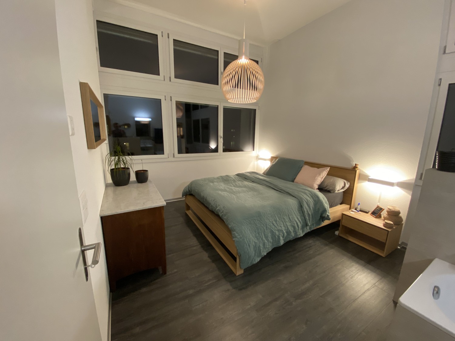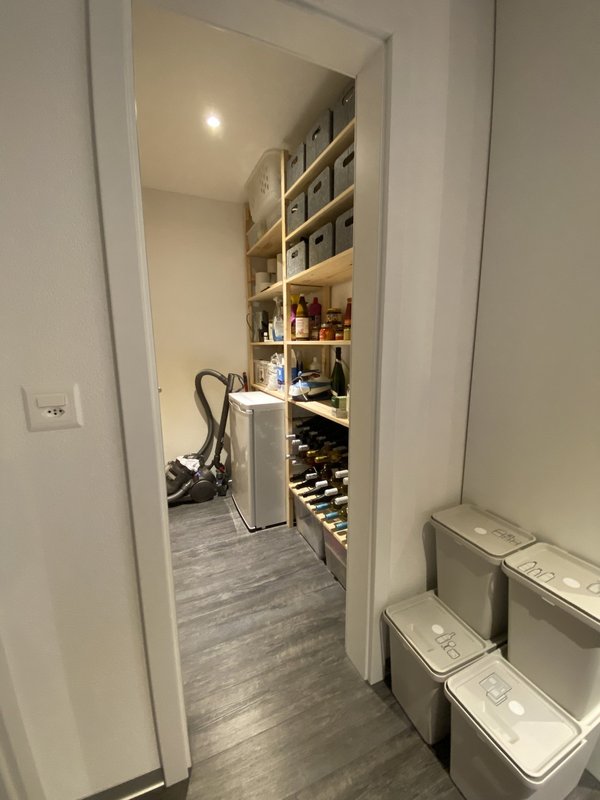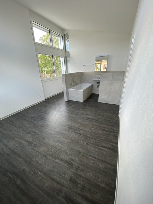 Cet appartement lumineux et moderne dispose de hauts plafonds, de grandes fenêtres orientées vers le sud avec vue sur le lac et les Alpes. Il comprend une cuisine ouverte bien équipée, un grand salon/salle à manger, 2 chambres, un réduit et une salle de bains avec douche. Une autre salle de bains avec baignoire est intégrée dans la chambre principale. L'appartement dispose également d'une grande cave. Un jardin avec aire de jeux est à la disposition de tous les locataires.