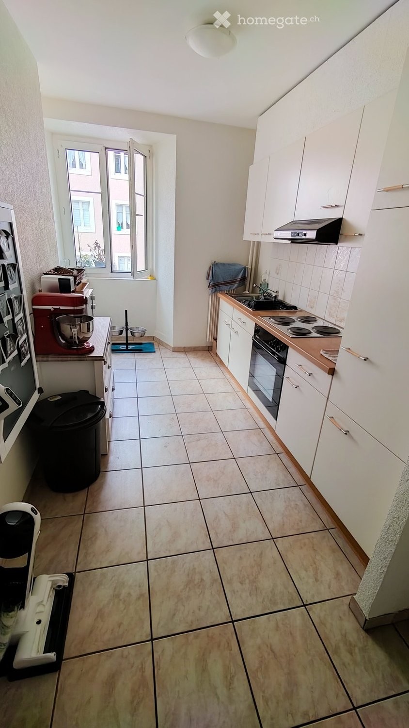 cuisine semi agencée avec beaucoup de rangements.