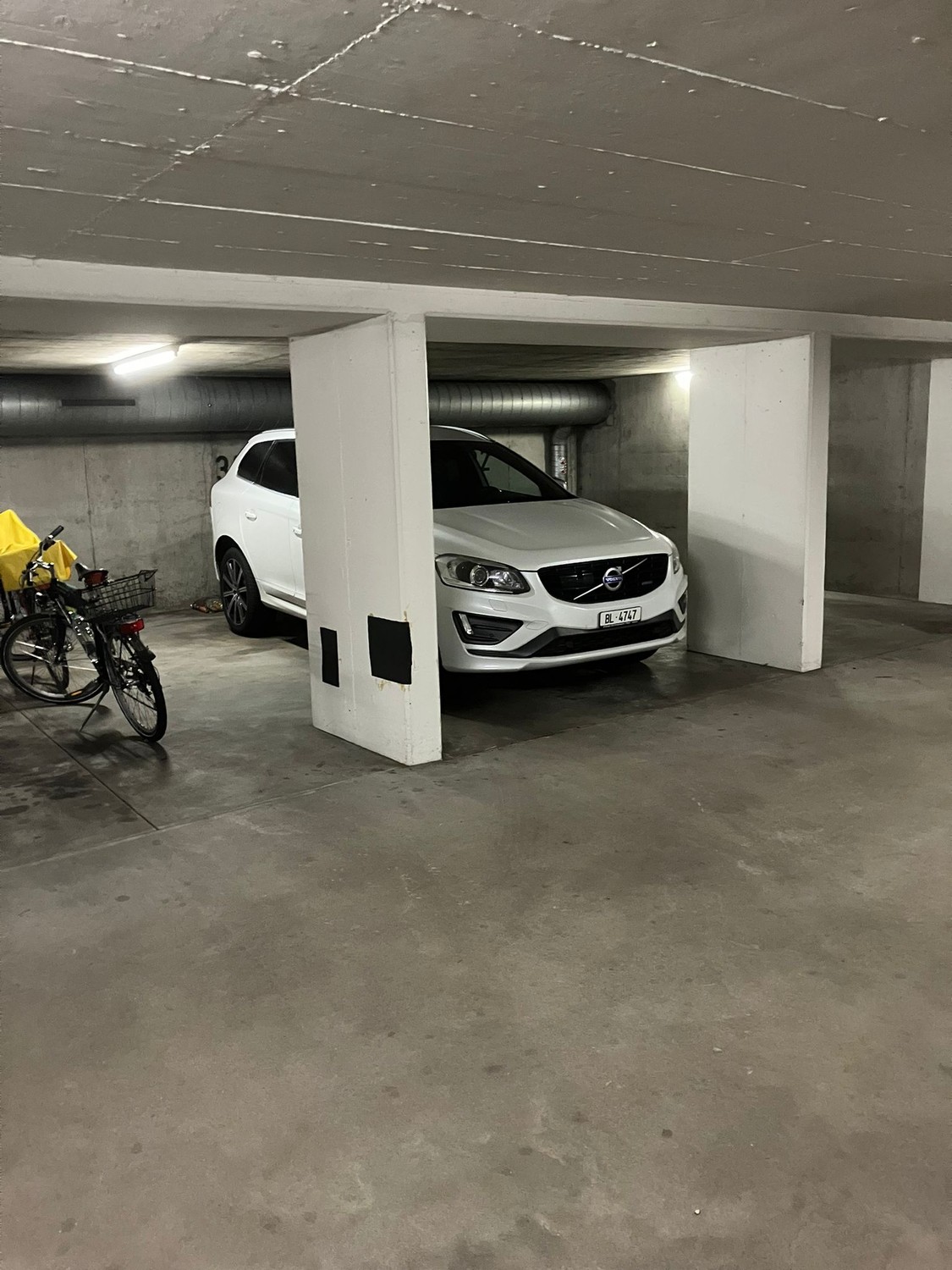 Ruhiger Garagenparkplatz mit Abstellplatz für Fahrrad und Waschraum.