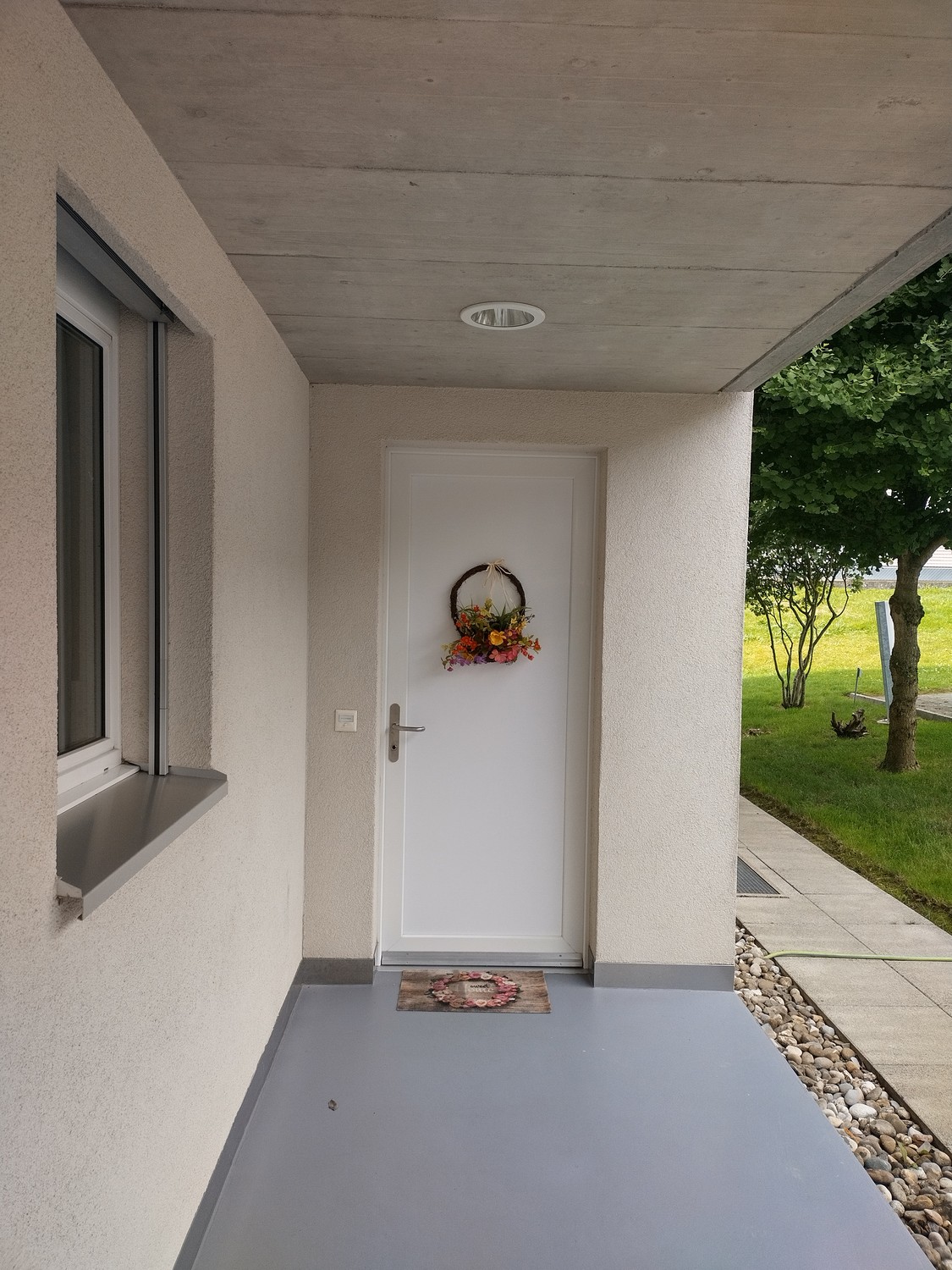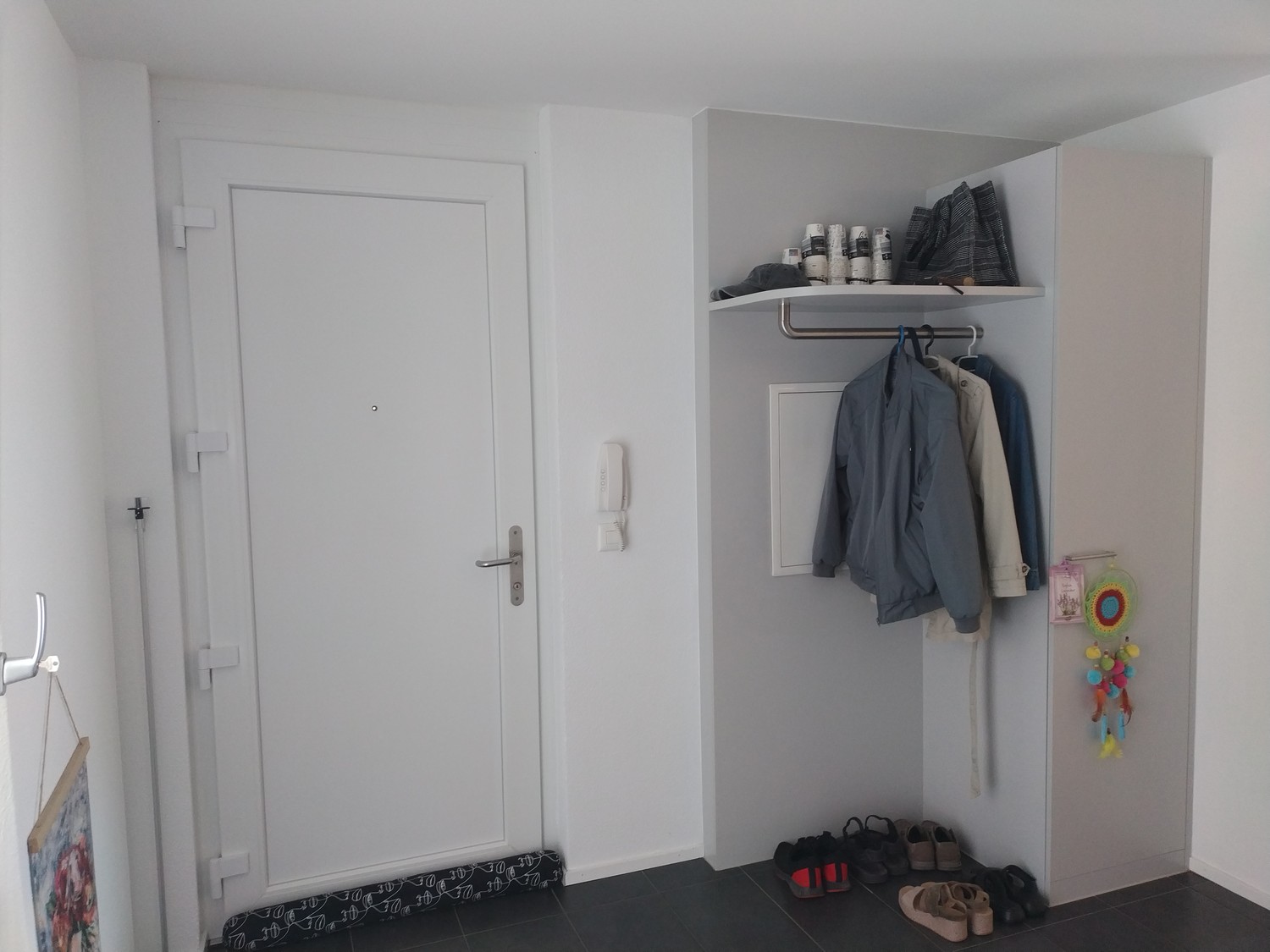 Der einladende Eingangsbereich mit Garderobe und Schrank heisst Sie herzlich willkommen. Der helle, grosszügige Wohn und Essbereich mit offener, moderner Küche bietet viel Platz für gemeinsame Momente.
