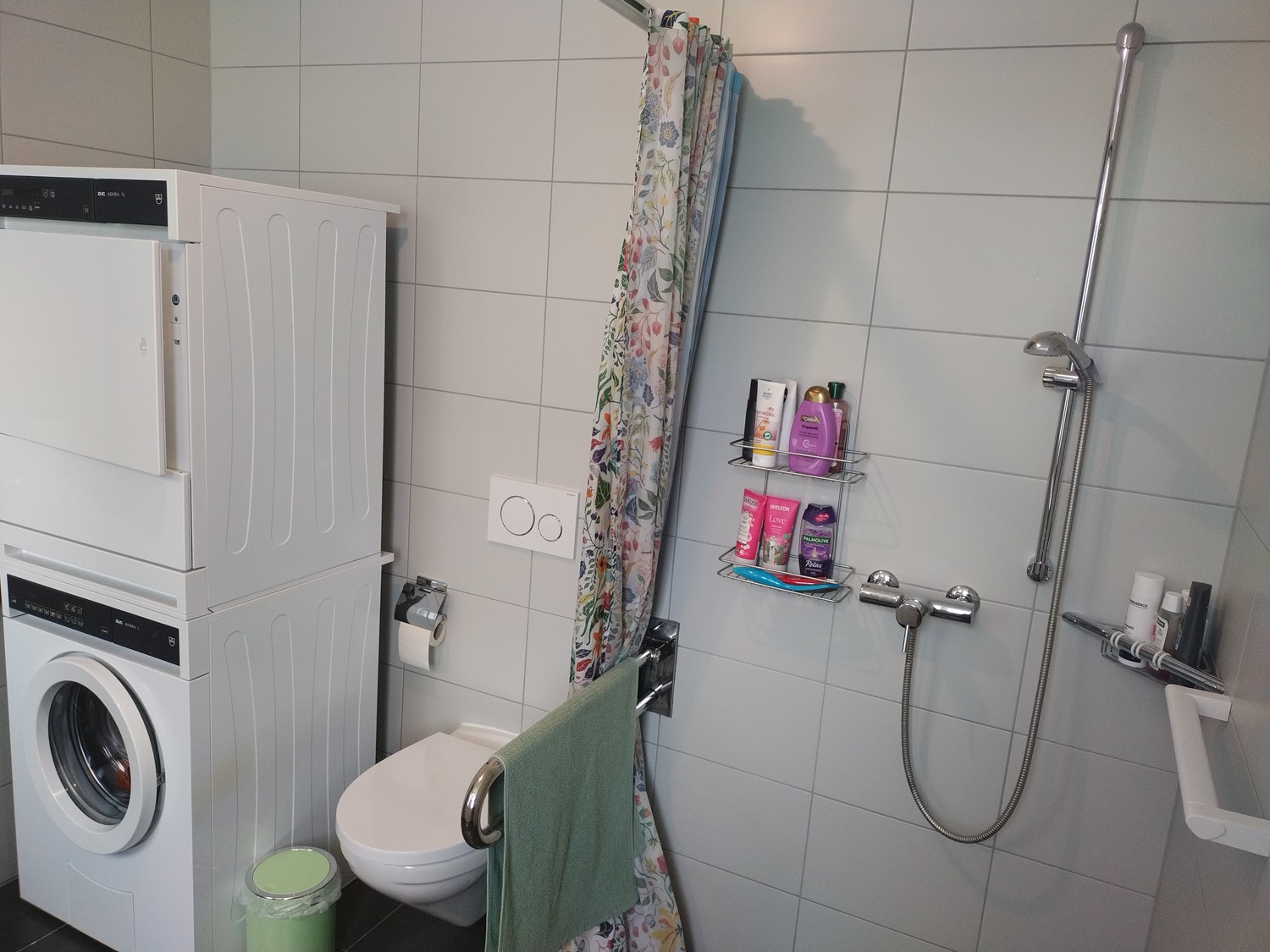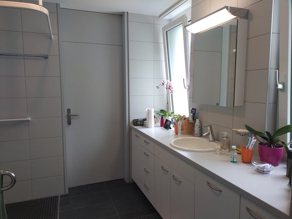 Die beiden Schlafzimmer sind gut geschnitten und besonders komfortabel, da sie direkten Zugang zum Tageslichtbad haben ausgestattet mit schwellenloser Dusche, Einbauschränken und Waschturm. Wohnen wie im Einfamilienhaus ;
