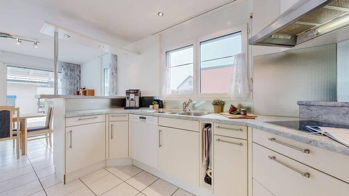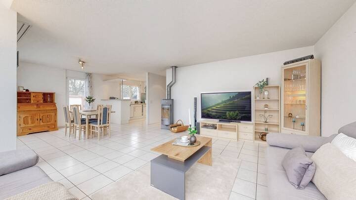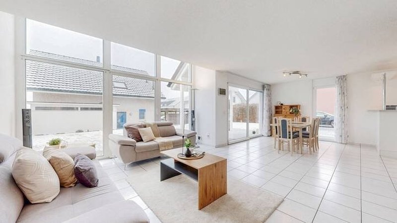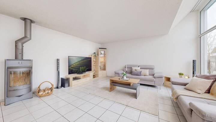 Auch die Materialisierung überzeugt mit langlebigen und pflegeleichten Lösungen. Im Erdgeschoss wurden hochwertige Keramikplatten verlegt, die den Wohnbereich stilvoll ergänzen. Die Haustechnik wurde laufend erneuert, unter anderem mit einer neuen Heizung und einem neuen Boiler ? ein klarer Vorteil für Käufer, die eine sorgenfreie Zukunft ohne grösseren Sanierungsbedarf schätzen.