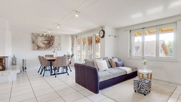 An ruhiger Lage im strategisch günstig gelegenen Meinisberg bei Biel im Seeland verkaufen wir eine attraktive 5.5 Zimmer Maisonettewohnung, die Flächenverhältnisse wie in einem Einfamilienhaus mit zeitlosem Wohncharme verbindet.Mit 127 m² Wohnfläche auf zwei Geschossen und insgesamt 153 m² Gesamtnutzfläche bietet die Wohnung ein aussergewöhnlich grosszügiges Raumprogramm. Dank regelmässiger Sanierungen präsentiert sich die Liegenschaft in einem sehr gepflegten Zustand.Die 5.5 flexibel nutzbaren Zimmer erlauben individuelle Gestaltungsmöglichkeiten ? von Schlafzimmern über Homeoffice bis zu Hobbyräumen. Besondere Highlights sind die gemütliche Dachschräge in den Schlafräumen und das Cheminée im Wohnzimmer, welches für eine warme Wohnatmosphäre sorgt.Der offene, lichtdurchflutete Wohnbereich mit grossen Fensterfronten schafft ein einladendes Ambiente. Die moderne und grosszügige Wohnküche aus dem Jahr 2019 überzeugt durch Design und Funktionalität. Zwei grosszügige Nassbereiche auf beiden Etagen ? Dusche/WC im 2. Obergeschoss und Bad/WC mit Waschturm im Dachgeschoss ? sorgen für Komfort im Alltag.Vom Wohnzimmer aus gelangen Sie auf den grossen, gedeckten Balkon mit viel Platz für Erholung im Freien. Zusätzlich stehen ein sehr grosser Keller im Sonderrecht sowie ein Dachboden als praktischer Stauraum zur Verfügung. Zwei Einstellhallenplätze sind im Kaufpreis inbegriffen.Ein ideales Zuhause für alle, die Raum, Charme und eine clevere Lage miteinander verbinden möchten.Interessiert? Weitere Informationen, Bilder und einen virtuellen Rundgang sowie Besichtigungsmöglichkeiten finden Sie unter: propertyowner.ch/de/immobilien/25-12412