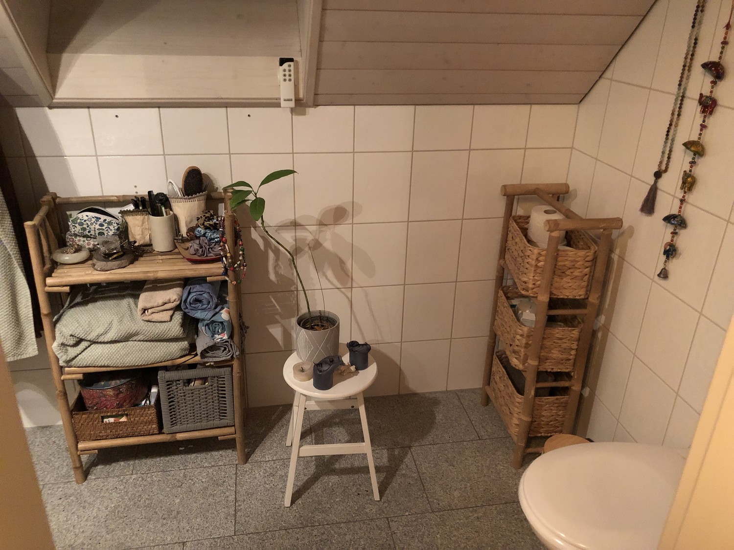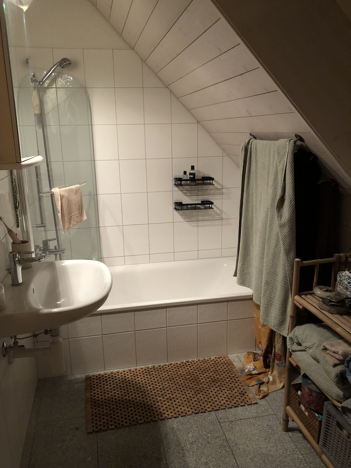 Im Kämmerchen gibt es eine Waschmaschine (also easy in der Wohnung waschen möglich). Du kannst aber auch die im Keller benutzen, wenn du magst.