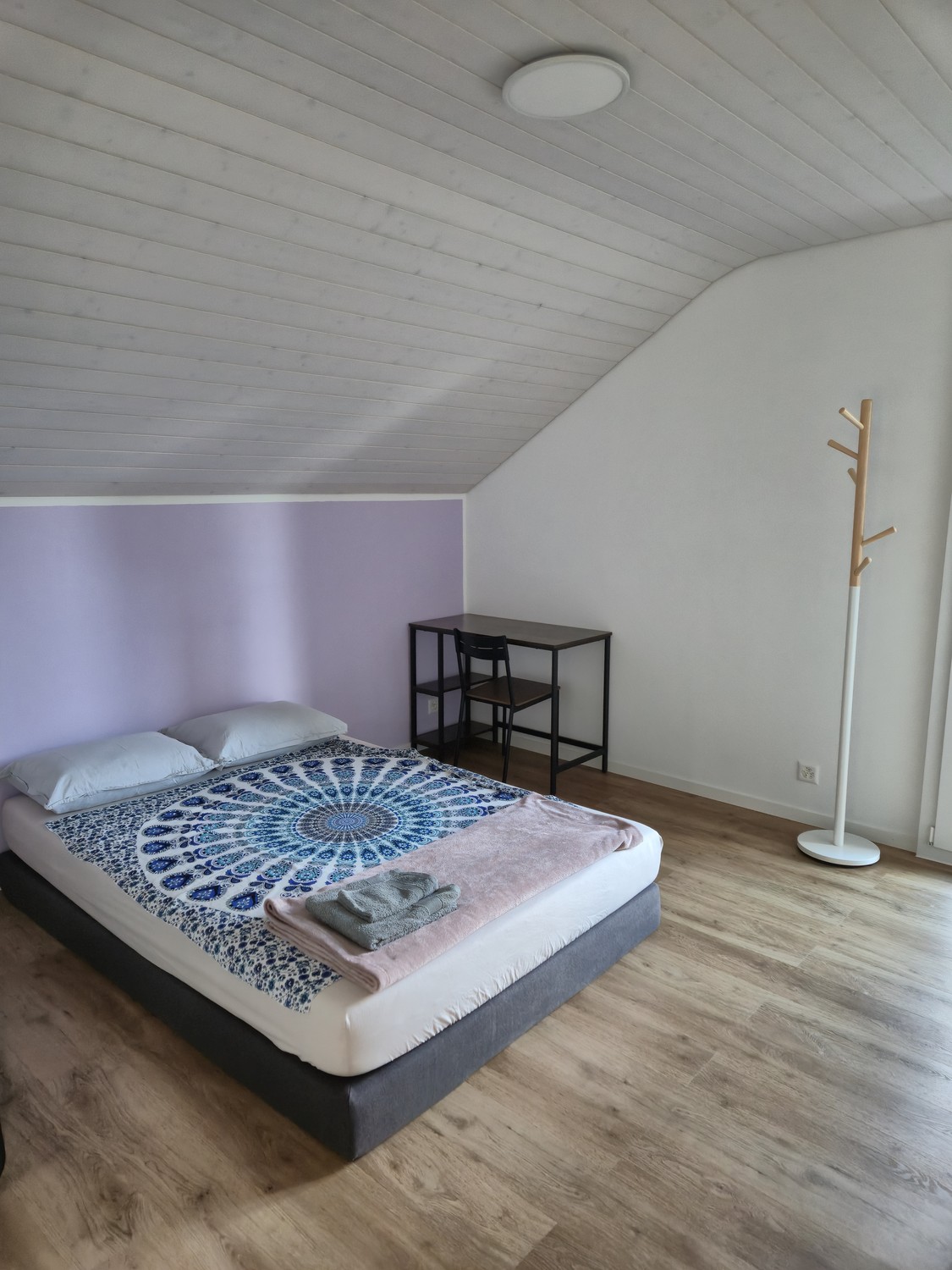 La chambre est meublee confortable et prete a etre habitee. L appartement est grand et bien entretenu. Il y a aussi une place de parking incluse et une buanderie gratuite dans l immeuble.