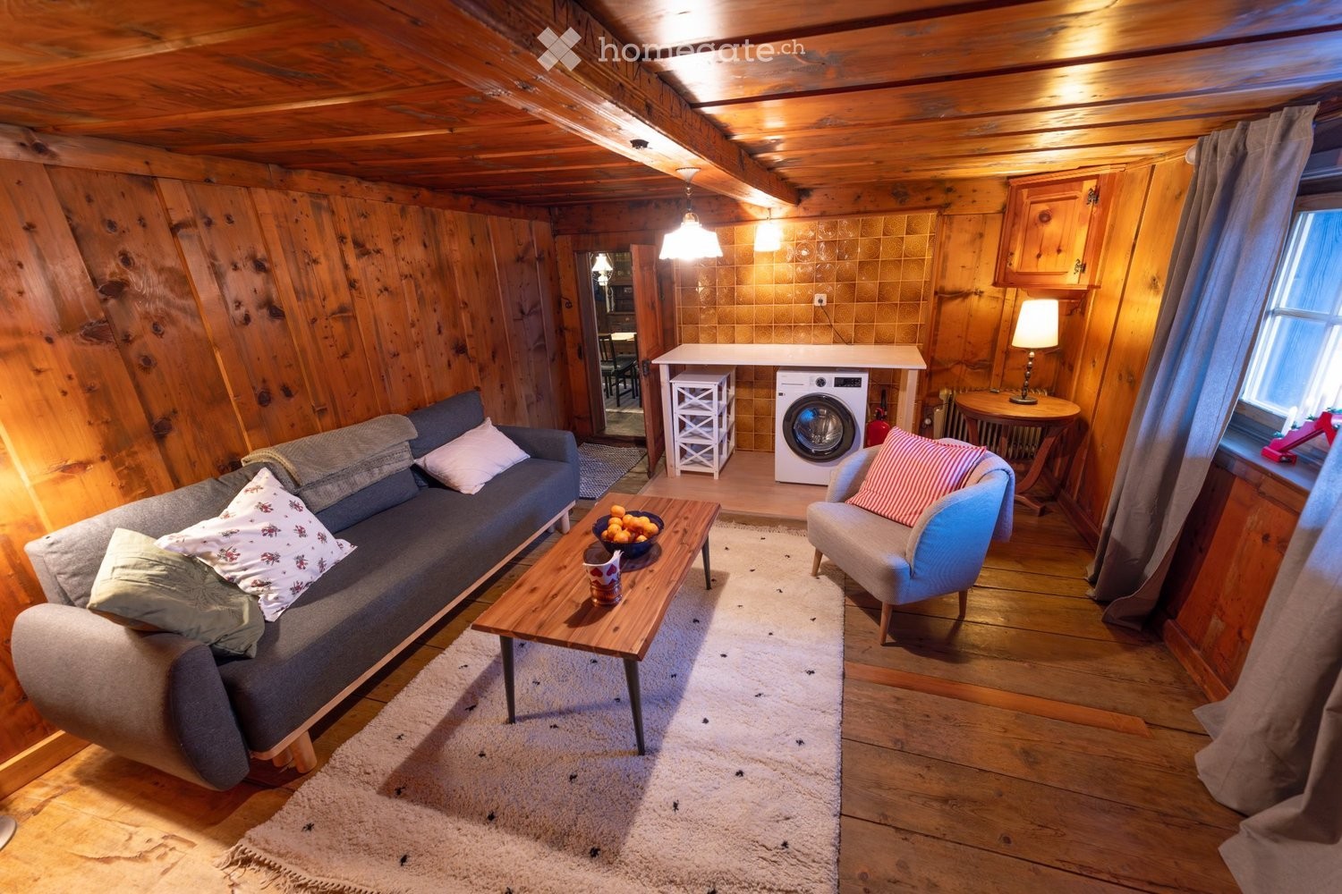 ? un salon rustique équipé d?une machine à laver. Et oui, il faut bien optimiser l?espace.
