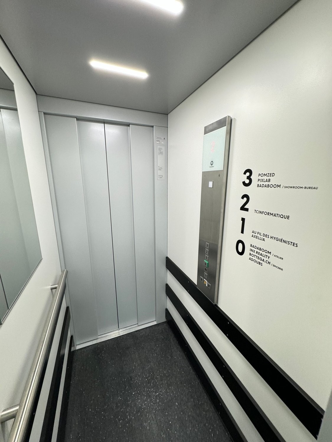 Accès facilité : Ascenseur moderne avec miroirs et accès pour personnes à mobilité réduite