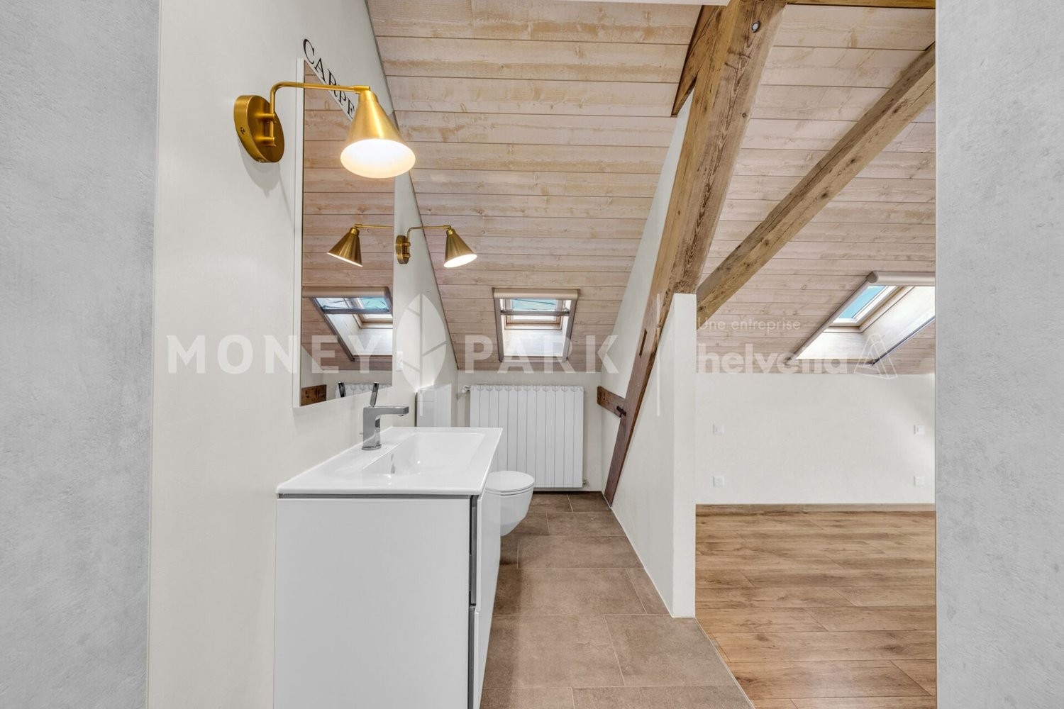 Deux places de parc extérieures et un portail électrique complètent ce bien.