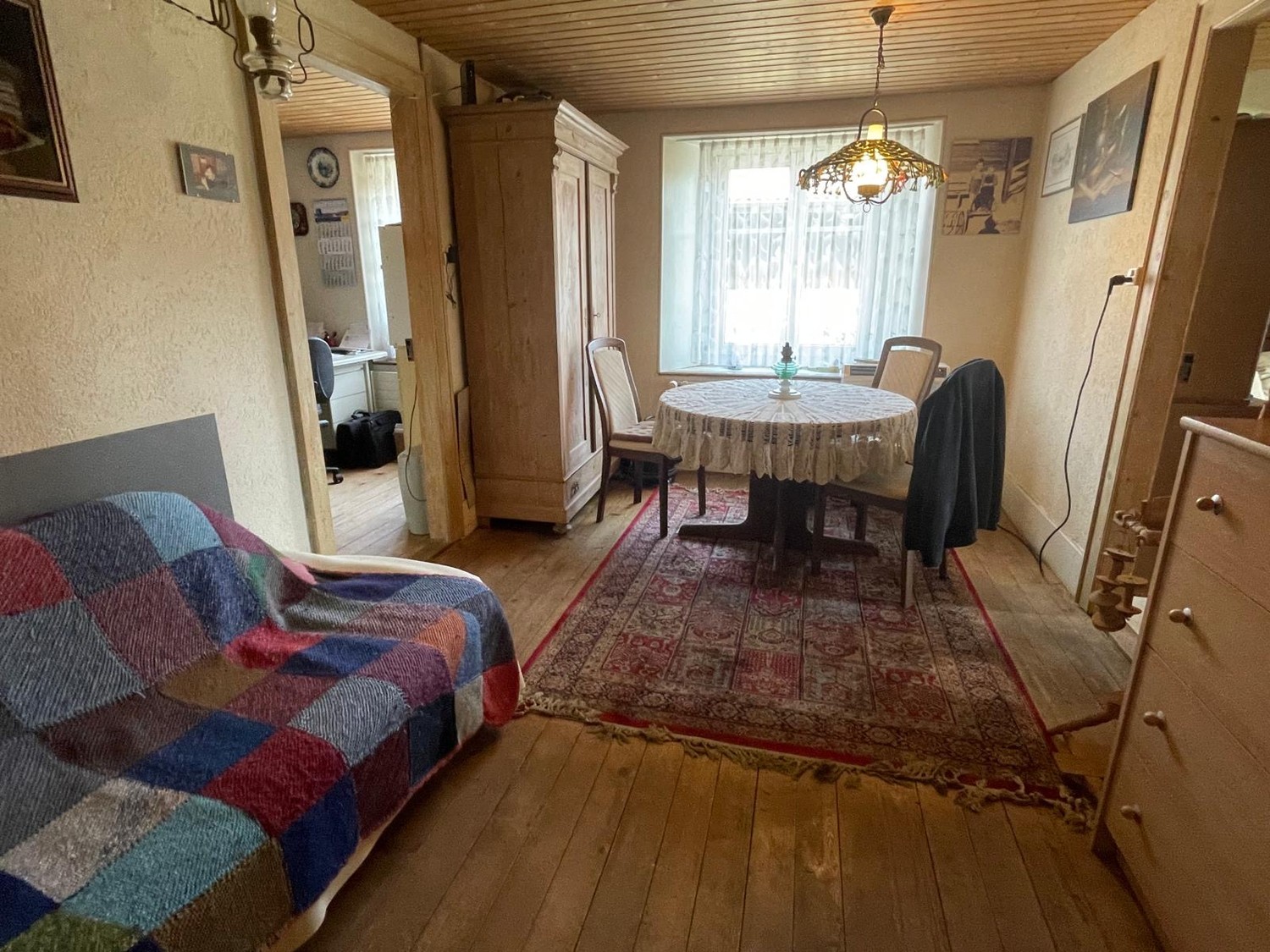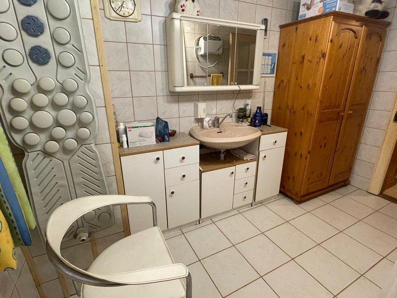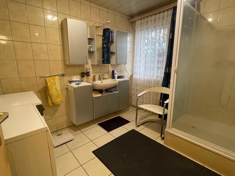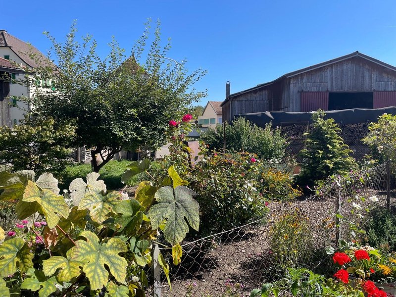 Grosse, einladende Küche mit Zugang zu einem kleinen Wohnzimmer oder hellen Esszimmer. Kleines Schlafzimmer oder Abstellraum. Hauswirtschaftsraum und Waschküche mit Waschmaschine. Grosses Badezimmer mit Dusche und WC. Offener Raum, der als zweites Wohnzimmer resp Schlafzimmer (oder seperate WG?) genutzt werden kann. Direkter Zugang zur offener und gedeckter Terrasse. Ein bunter und gepflegter Garten lässt das Gärtnerherz höher schlafen