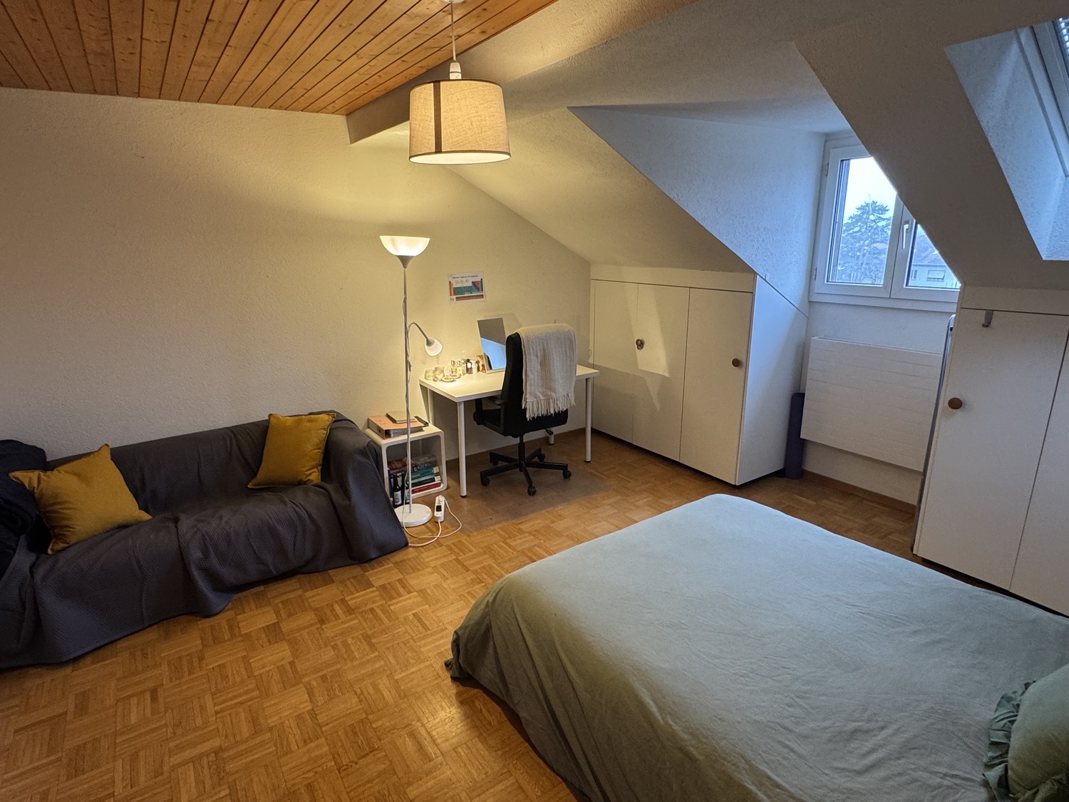 We are two PhD students (one Scottish girl (26), and one French guy(27)) with a room available in our flat share located in Kirchenfeld, Bern from the 1st of April. The flat has a washing machine shared by the 3 flatmates, which is in the kitchen, there is also a living room, with a sofa and a large TV. There are also 2 bathrooms in the flat. We have a garden shared by the block (there are 4 other flats in the block), the other people who live there are families who are very chill and nice (no problems with noise etc.). There is also storage in the basement and another washing machine and dryer shared by the 5 flats.