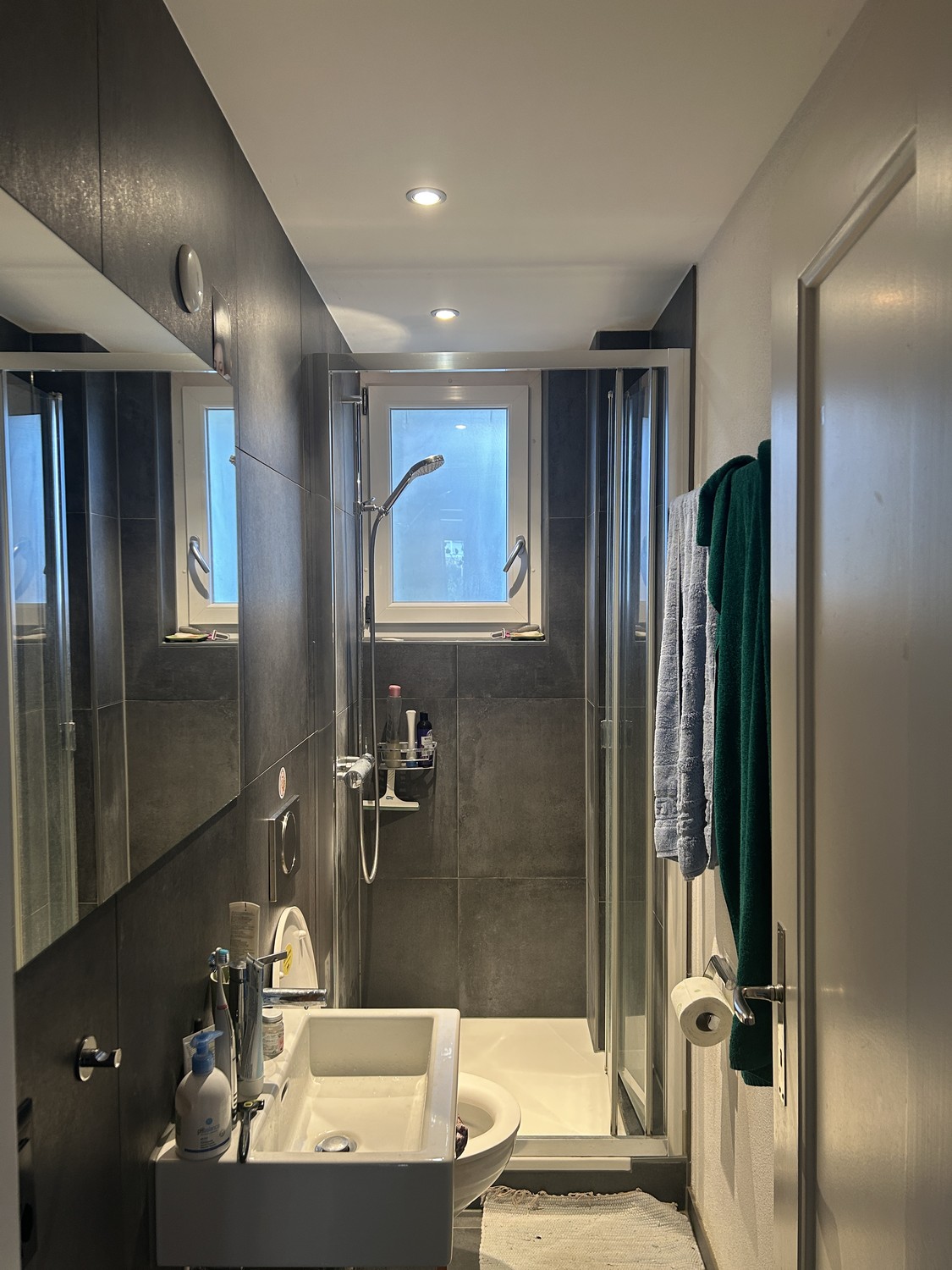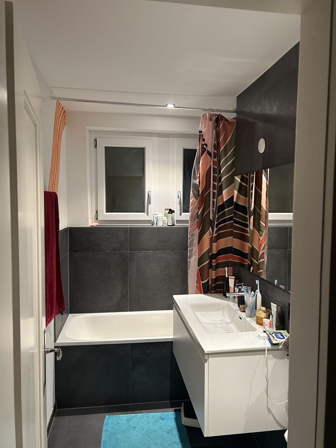 Wir haben ein gemeinschaftliches Wohnzimmer, zwei Bäder, einen kleinen Balkon, eine Terrasse und eine Waschküche. Tram und Bus sind in ca. 3 Minuten erreichbar, Supermärkte gibt es ebenfalls ganz in der Nähe.