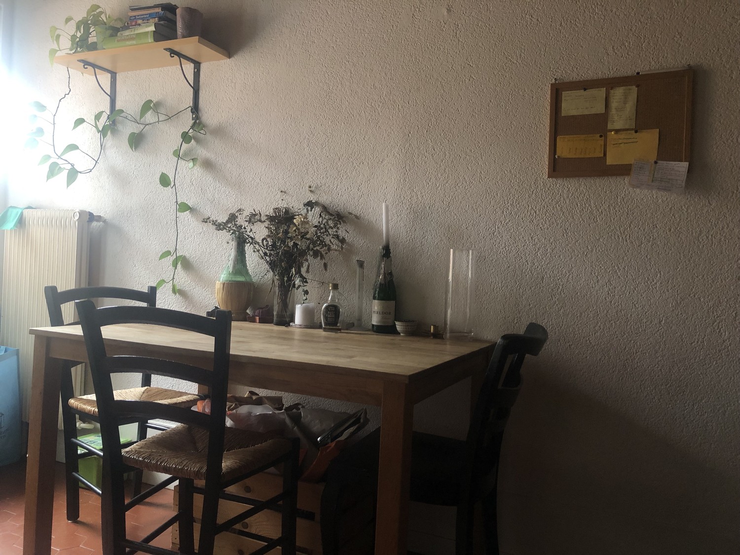 We share a kitchen, bathroom, and small balcony within the apartment.
