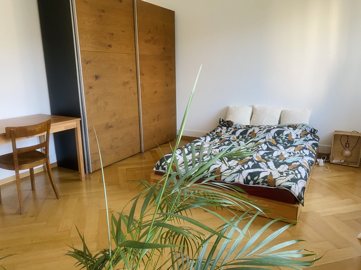 Dein Zimmer ist möbliert mit Bett, Schrank und Arbeitstisch – also perfekt für eine Zwischenlösung oder einen temporären Aufenthalt.