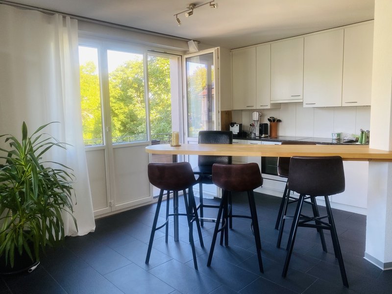 Du würdest mit Stefano (33), Sportlehrer und unkomplizierter Mitbewohner, in einer 2er-WG wohnen. Die Wohnung ist voll ausgestattet und hat einen grosszügigen Wohn- und Küchenbereich, den ihr euch teilt.