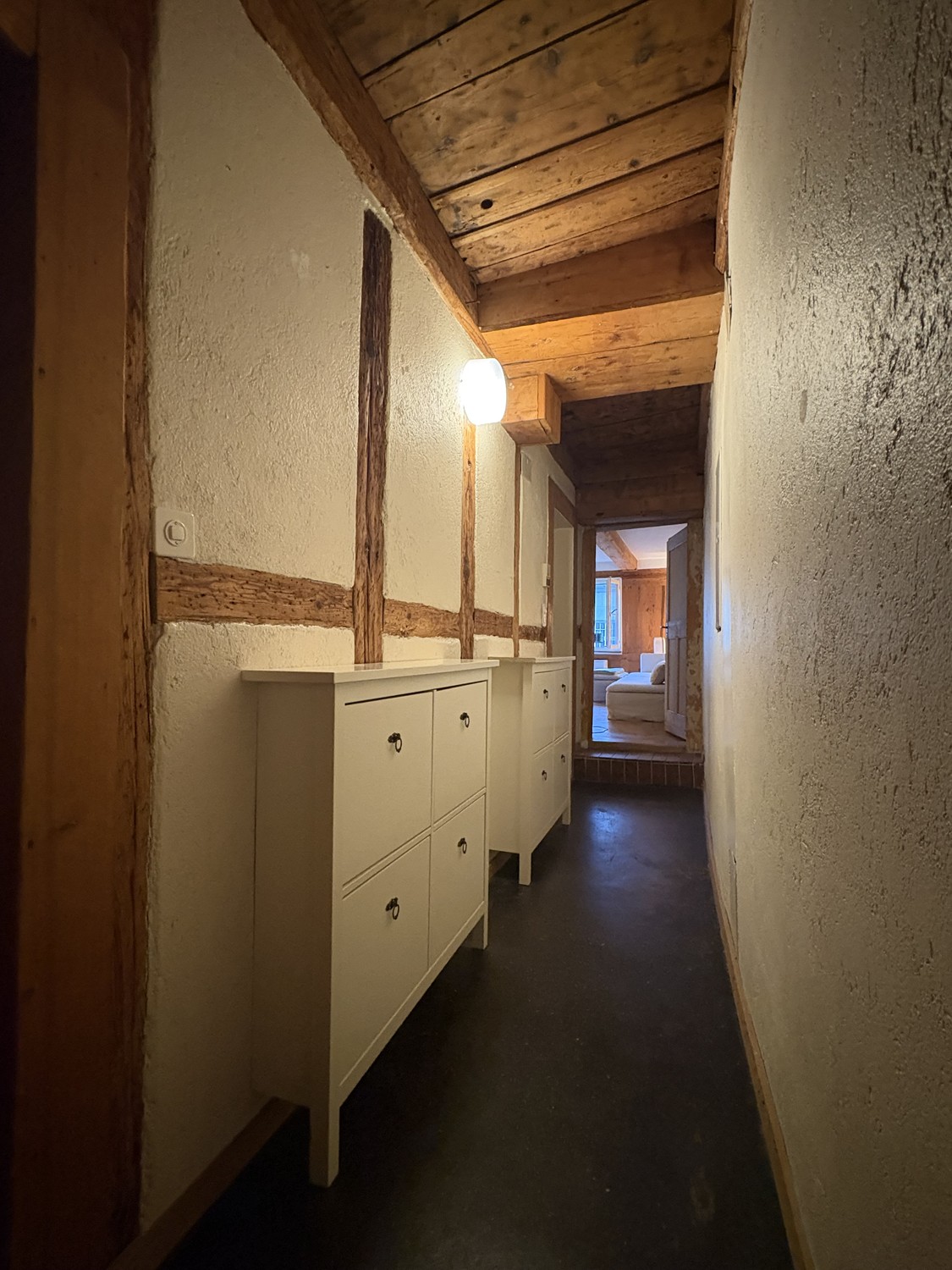 Die Wohnung vereint rustikalen Charme mit modernem Komfort: Holzbalken, liebevoll ausgewählte Möbelstücke und warme Farbtöne schaffen eine Atmosphäre, die sofort Geborgenheit und ein Gefühl von zu Hause ausstrahlt.