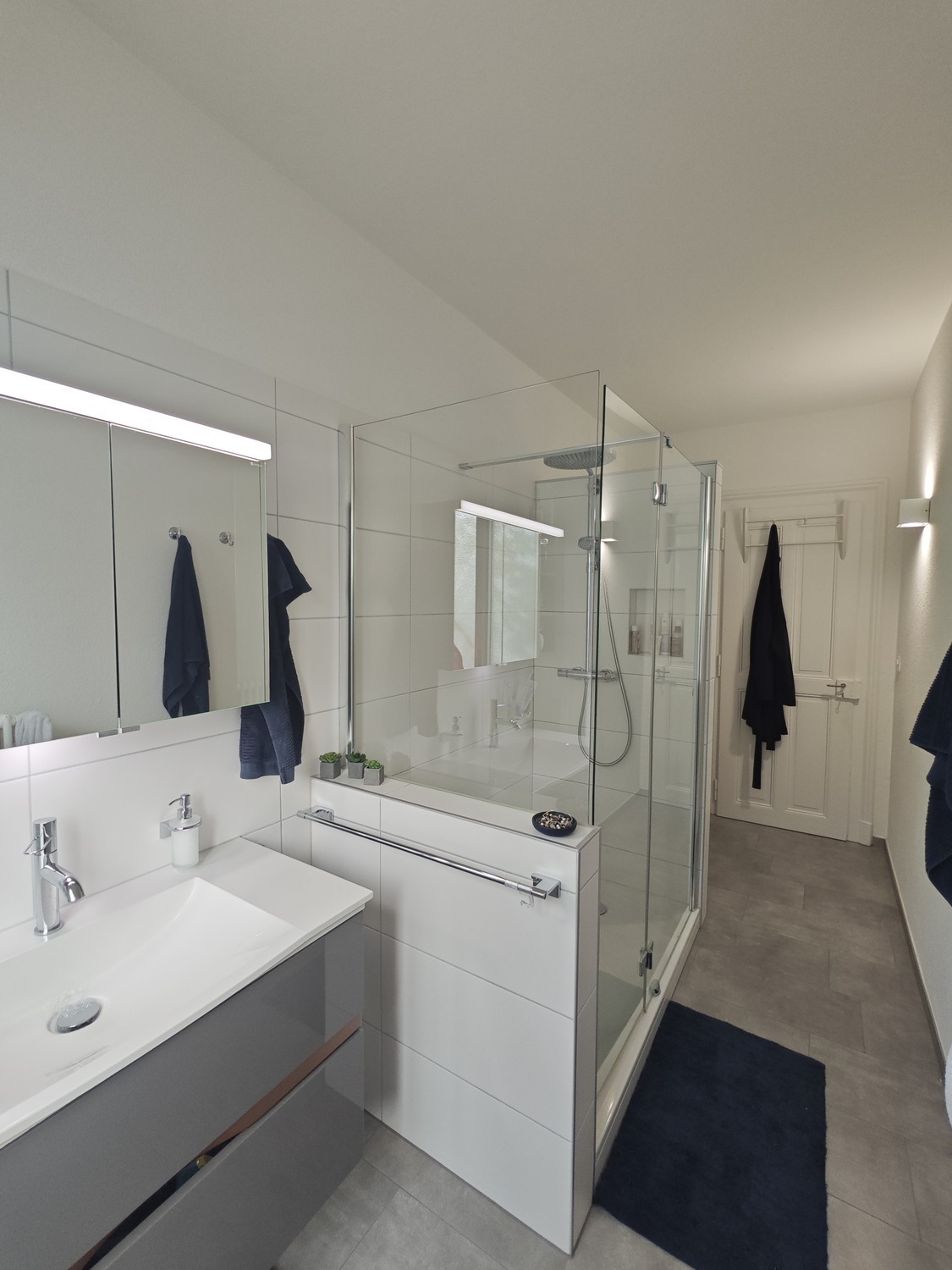 grosses & helles Badezimmer mit grosszügiger Dusche