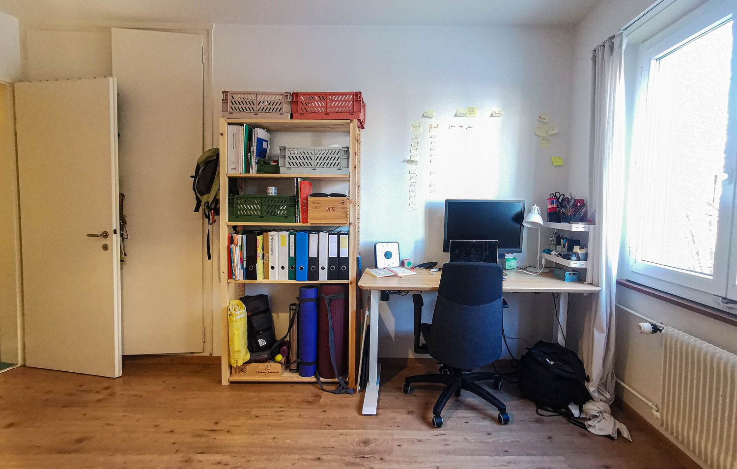 - Height-adjustable desk with office chair