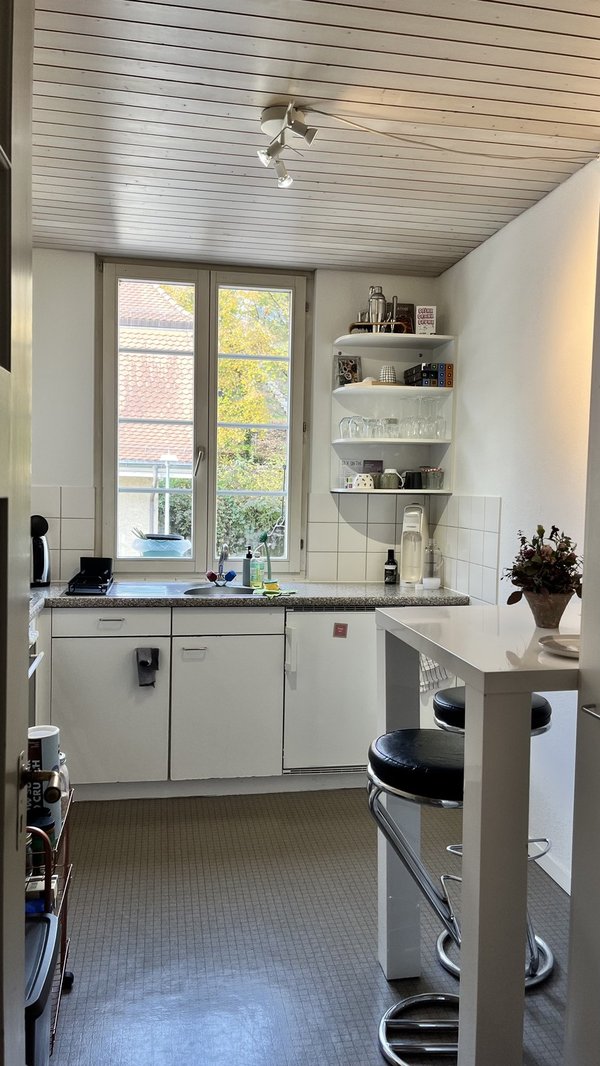 Die Wohnung ist gut ausgestattet und verfügt eigentlich über alles, was man braucht. Waschmaschine, Tumbler und Trocknungsraum werden mit den Nachbarn geteilt. Zusätzlich gibt es einen Veloraum, Kellerabteil und einen Garten, der in Absprache mit den Nachbarn ebenfalls genutzt werden kann.