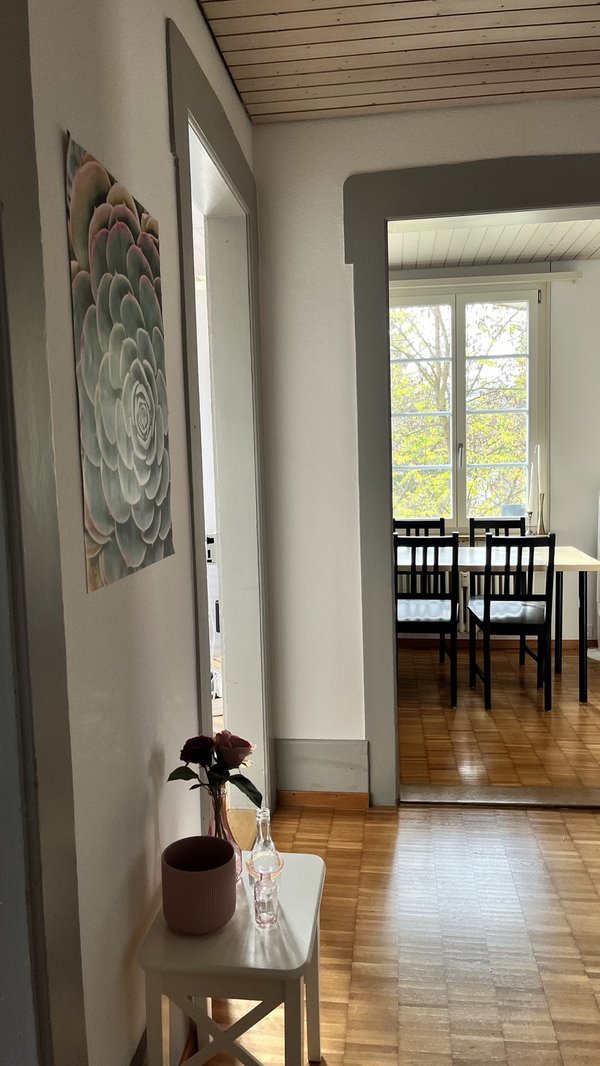 Die Wohnung ist gut gelegen, in nur 10 Minuten ist man mit dem Bus am Hauptbahnhof in Bern und in weniger als 5 Minuten Fussweg an der Aare, um baden oder spazieren zu gehen.