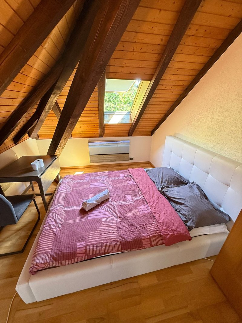 A very large and bright room (33 m?) is available in a spacious house with a big garden.