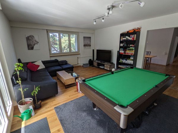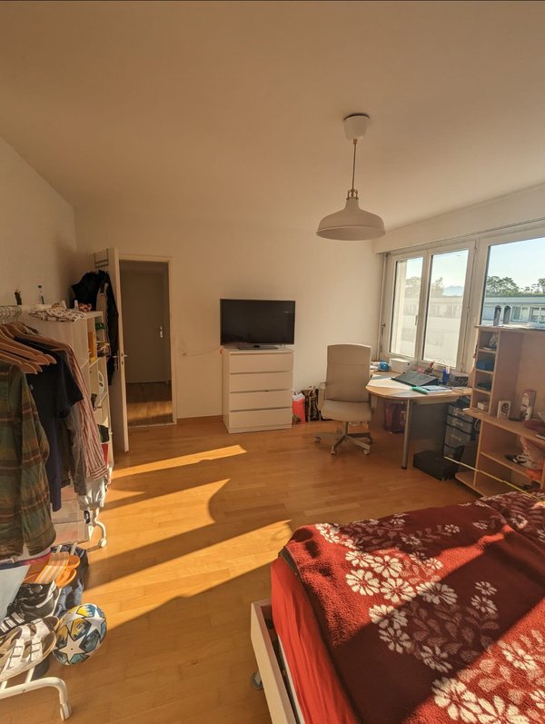 Da ich ab dem 01.01 ausziehe, wird mein riesiges WG-Zimmer frei. Die Wohnung befindet sich gleich neben der Tramhaltestelle Sandrain. Du würdest die Wohnung mit zwei Mitbewohner (M30 und M26) teilen. Das Zimmer hat ca. 25 qm und Du würdest Dir das Bad mit einem der Mitbewohner teilen. Im Zimmer befindet sich ein grosser Schrank mit Spiegeltüren 350x236, ich wäre froh, wenn der Nachmieter/die Nachmieterin diesen übernehmen würde.