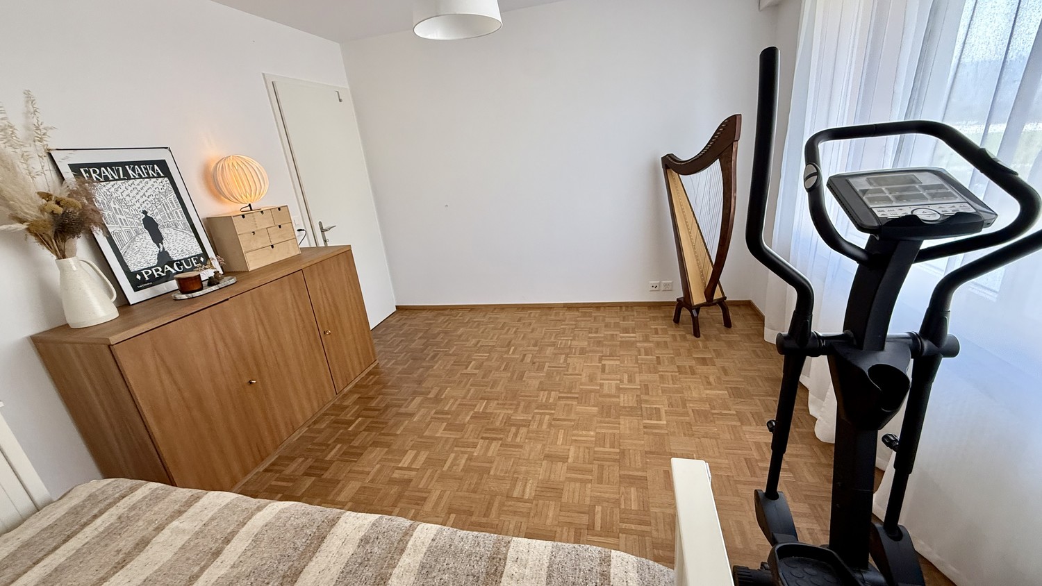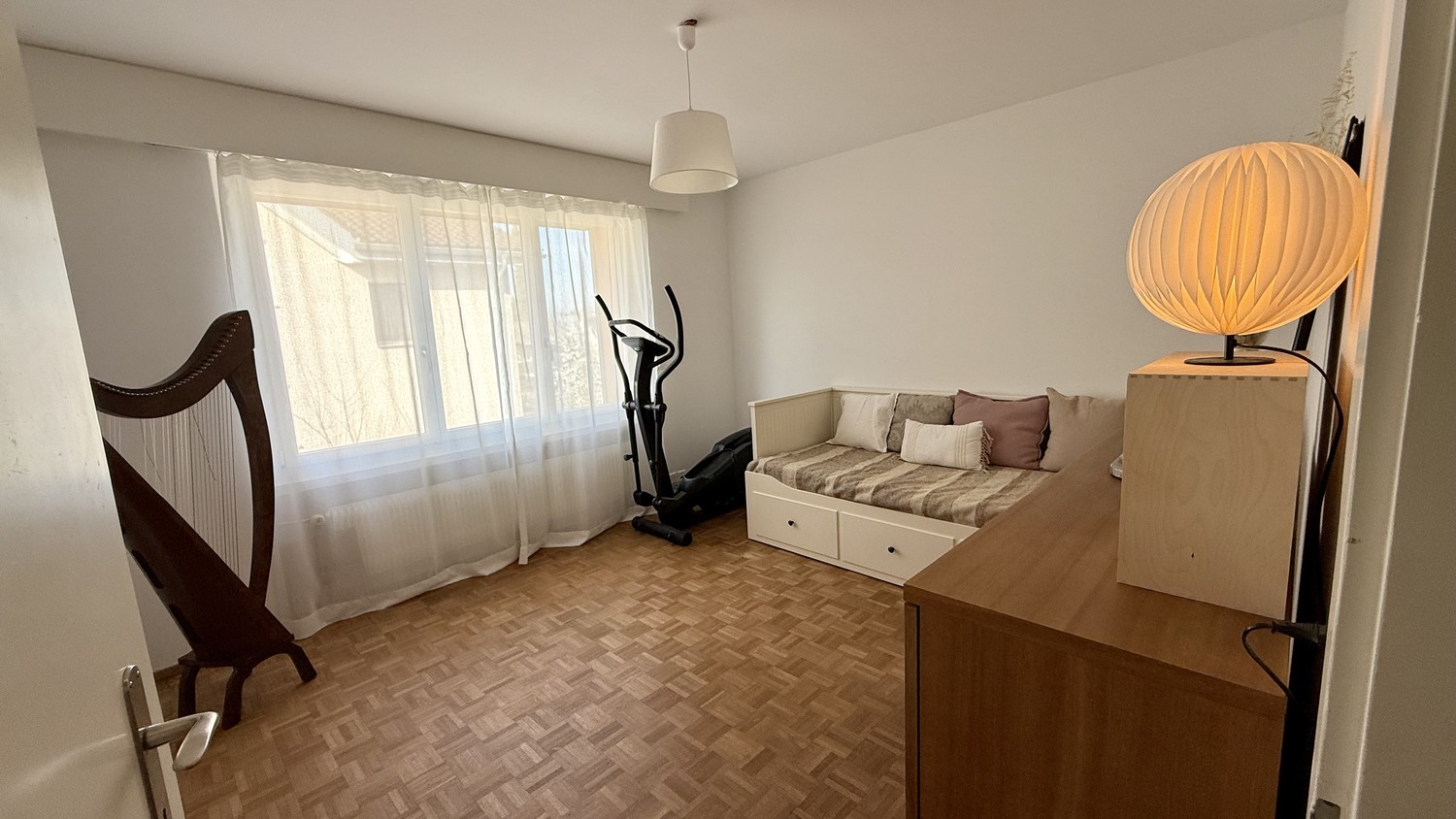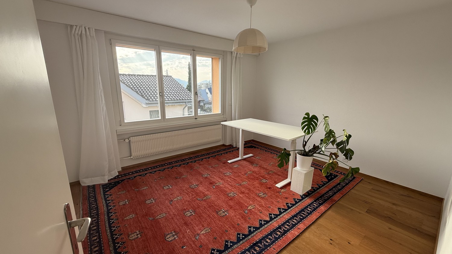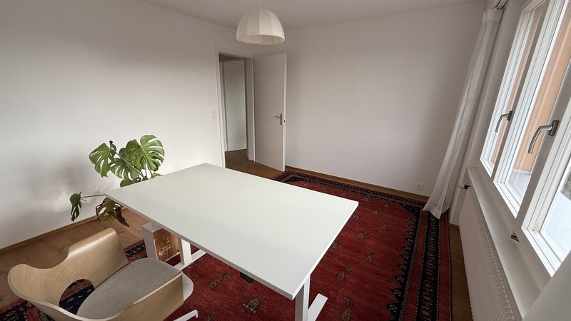 Möbliertes Wohnen auf Wunsch möglich. Alle Möbel sind neu oder neuwertig (ein Bett: 1.60 x 200 cm; ein Pult, zwei Deckenlampen, eine Tischlampe, eine Nachttischlampe, ein Teppich) (zzgl. 60 CHF/Monat)