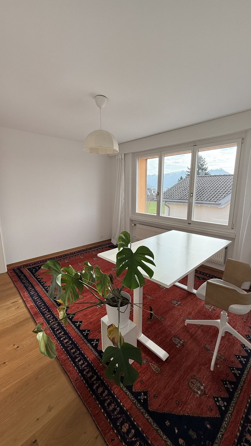 Zwei helle, geräumige Zimmer in einer 2er-WG warten auf dich – in einem wunderschönen, freistehenden Einfamilienhaus (insgesamt 6.5 Zimmer) mit herrlichem Alpenblick. Ich suche eine Einzelperson als WG-Gspänli und vermiete nicht an Paare oder Familien.