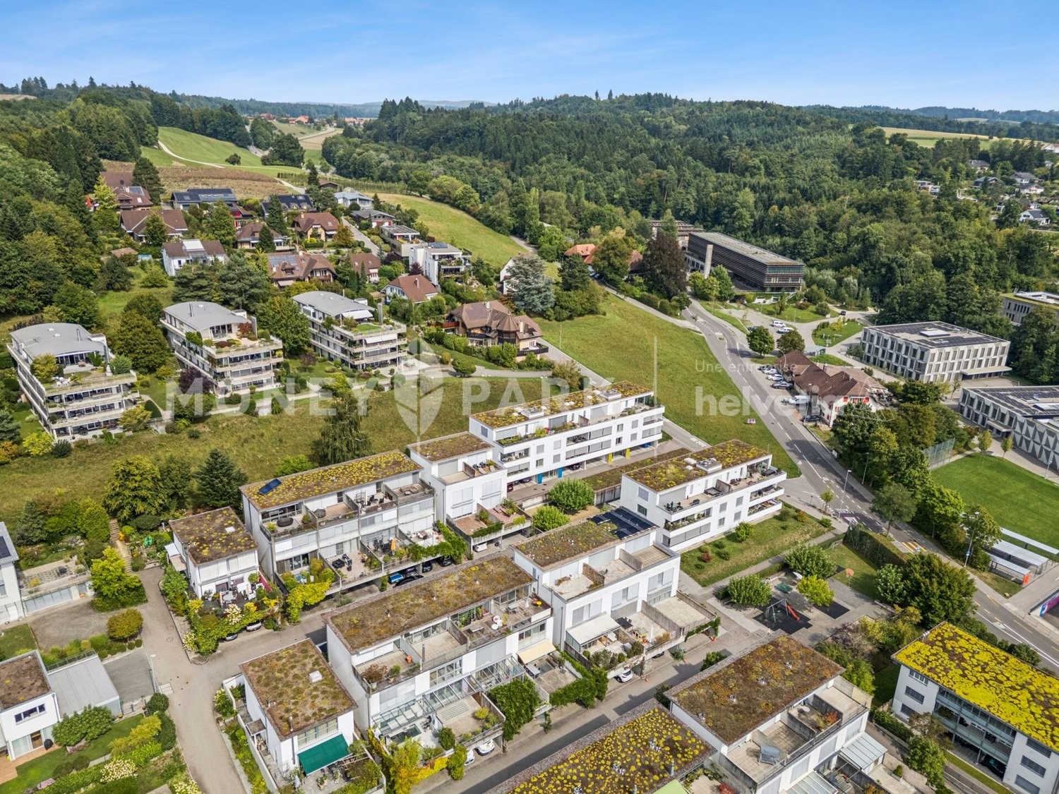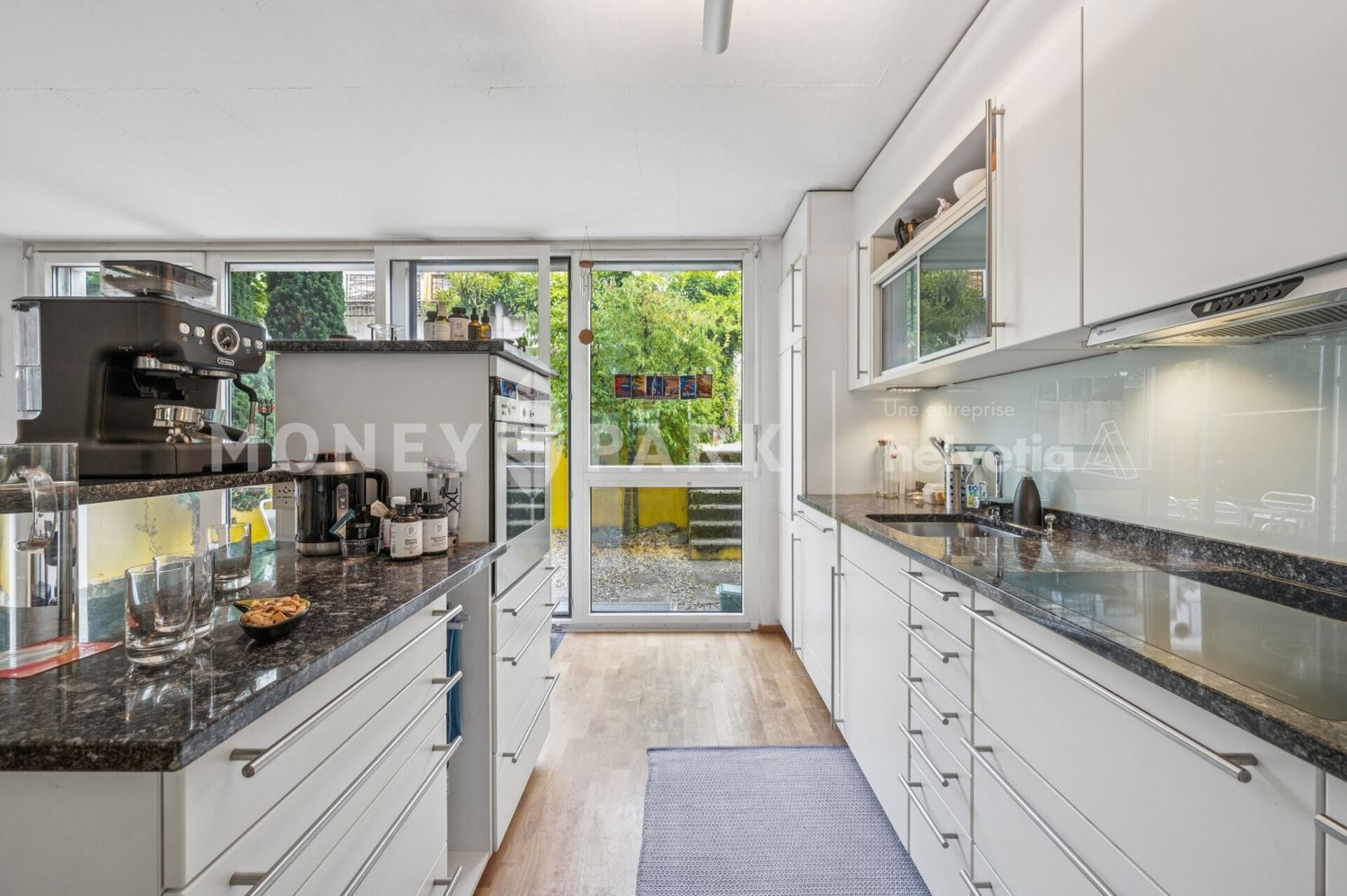 Über mehrere Etagen verteilt, überzeugt das Haus durch seine grosszügigen Raumhöhen, helle Lichtverhältnisse und hochwertige Materialien, darunter Kirschholzparkett in allen Räumen. Das Erdgeschoss beherbergt einen weitläufigen Wohnbereich mit offener, moderner Küche, die nahtlos in den Ess- und Wohnbereich übergeht. Von hier aus gelangt man direkt auf eine geräumige Terrasse und in den privaten Garten - perfekt, um sonnige Tage zu geniessen.