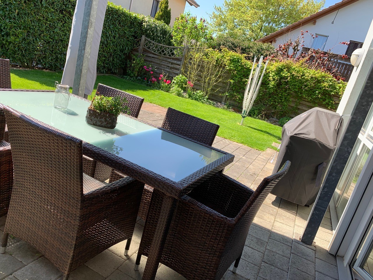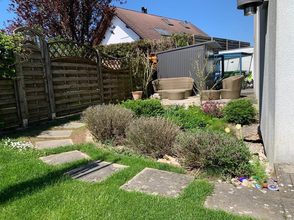 Zwei Sitzplätze mit pflegeleichter Grünfläche