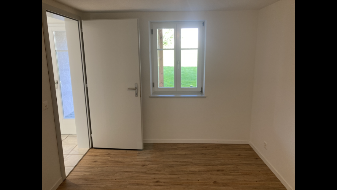 Zu vermieten ab 01.05.2026 oder nach Vereinbarung klimatisierte 2.5 Zimmer-Wohnung im EG in ruhigem Einfamilienhaus-Quartier in steuergünstiger Gemeinde Meyriez bei Murten.
