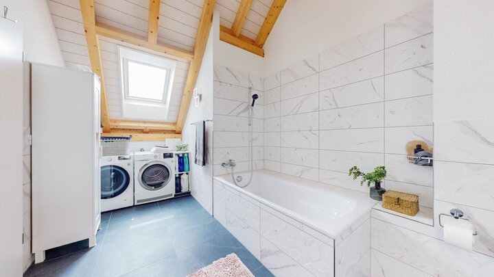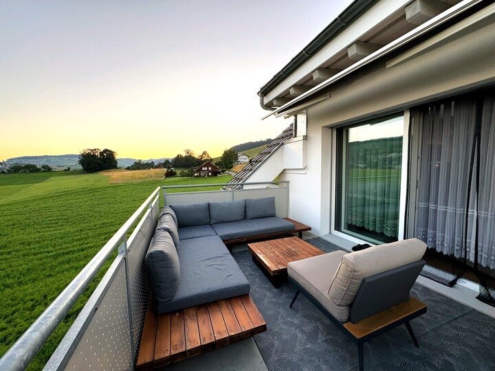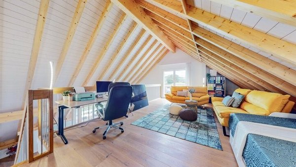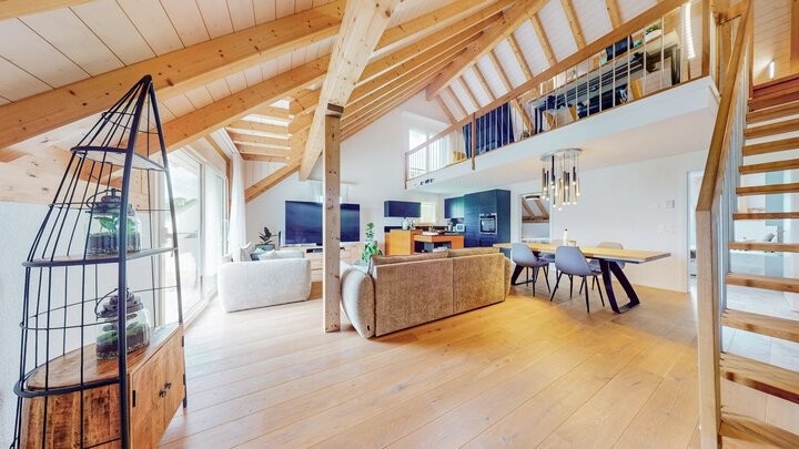 Lichtdurchflutete Dachwohnung mit Galerie, hochwertigem Ausbau und traumhafter Aussicht in KonolfingenDiese aussergewöhnliche 5.5-Zimmer-Dachwohnung in 3510 Konolfingen vereint Grosszügigkeit, Komfort und Wohnqualität auf höchstem Niveau. Mit 146 m² Wohnfläche und aussergewöhnlich hohen Räumen wirkt sie noch weitläufiger und schafft ein einzigartiges Raumgefühl.Der offen gestaltete Wohn-/Ess- und Küchenbereich mit 52 m² bildet das Herzstück der Wohnung. Von hier gelangen Sie direkt auf die sonnige 16 m² grosse Südwest-Terrasse ? ein idealer Ort für erholsame Abendstunden. Die offene Küche mit Steinabdeckung verbindet stilvolles Design mit überdurchschnittlich viel Stauraum.Besonders eindrucksvoll ist die Galerie, die den Wohnraum nach oben öffnet und als flexibler Bereich für Arbeiten, Rückzug oder Hobby genutzt werden kann. Von hier aus erreichen Sie den Balkon mit Morgensonne und wunderbarer Aussicht auf die Umgebung.Der Innenausbau überzeugt mit hochwertigem Echtholzparkett in den Wohnräumen sowie gepflegten Nassbereichen mit Keramikplatten. Zwei grosszügige Badezimmer ? eines mit Dusche/WC, das andere mit Bad/WC ? sorgen für Komfort, ebenso wie ein eigener Waschturm mit Waschmaschine und Tumbler.Das Panorama auf die grüne Landschaft und das charmante Konolfingen rundet dieses einzigartige Wohnangebot ab. Eine Dachwohnung, die Design, Komfort und Natur perfekt miteinander verbindet.Interessiert? Weitere Informationen, Bilder und einen virtuellen Rundgang sowie Besichtigungsmöglichkeiten finden Sie unter: propertyowner.ch/de/immobilien/24-91463