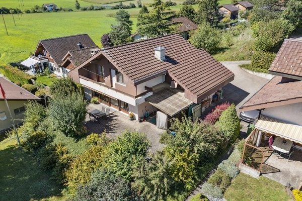An erhöhter Lage im idyllischen Thierachern nahe Thun verkaufen wir ein freistehendes 5.5-Zimmer-Einfamilienhaus mit viel Charme und grosszügigem Umschwung. Von hier aus geniesst man einen traumhaften Ausblick auf Eiger, Mönch, Jungfrau und den Thunersee ? ein Panorama, das jeden Tag aufs Neue begeistert.Das Haus bietet 142 m² Wohnfläche und insgesamt 233 m² Nutzfläche, verteilt auf drei Geschosse. Der offene Wohnbereich besticht durch grosse Fensterfronten, die viel Licht hereinlassen, und ermöglicht den direkten Zugang zum sonnigen Gartensitzplatz. Die offene Schreinerküche mit gestemmten Fronten und grosszügiger Arbeitsfläche erfüllt auch gehobene Ansprüche.Die Nassbereiche sind funktional und hochwertig ausgestattet: Ein Familienbad mit Bad/Dusche/WC im Obergeschoss sowie ein Gäste-WC im Erdgeschoss. Dazu kommen praktische Nebenräume wie zwei Kellerräume und eine sehr grosszügige Waschküche.Das Grundstück von 761 m² bietet viel Raum für Gartenliebhaber: Zwei Sitzplätze, gepflegte Rasenflächen und vielfältige Bepflanzungen schaffen eine Oase der Ruhe, von der aus man die Bergsicht in vollen Zügen geniessen kann.Abgerundet wird das Angebot durch zwei Garagenboxen mit direktem Zugang ins Haus sowie zwei Aussenstellplätze. Ein ideales Zuhause für Familien und Menschen, die Wohnen in naturnaher Umgebung mit bester Aussicht schätzen.Interessiert? Weitere Informationen, Bilder und einen virtuellen Rundgang sowie Besichtigungsmöglichkeiten finden Sie unter: propertyowner.ch/de/immobilien/25-12411
