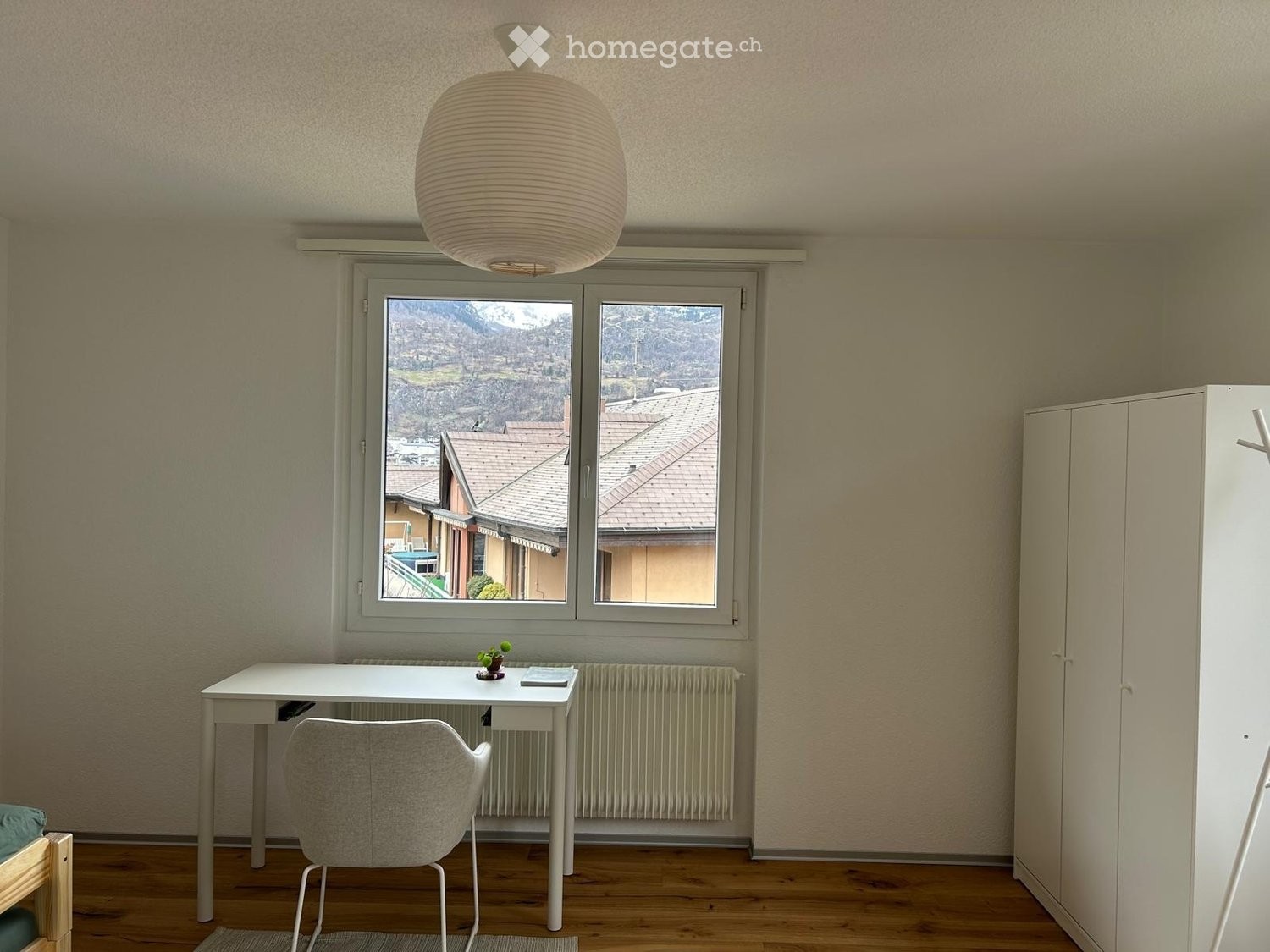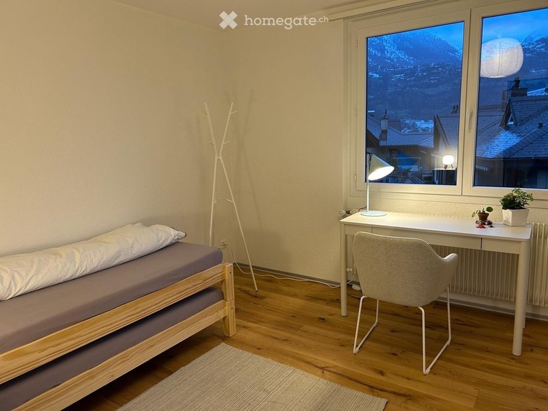 Wir haben ein helles, neu möbliertes Zimmer, in frisch sanierter 4 1/2 Zimmer Wohnung, an super zentraler Lage ohne Durchgangsverkehr in Brig zu vermieten. Bahnhof und Altstadt sind nur 5 Gehminuten entfernt.