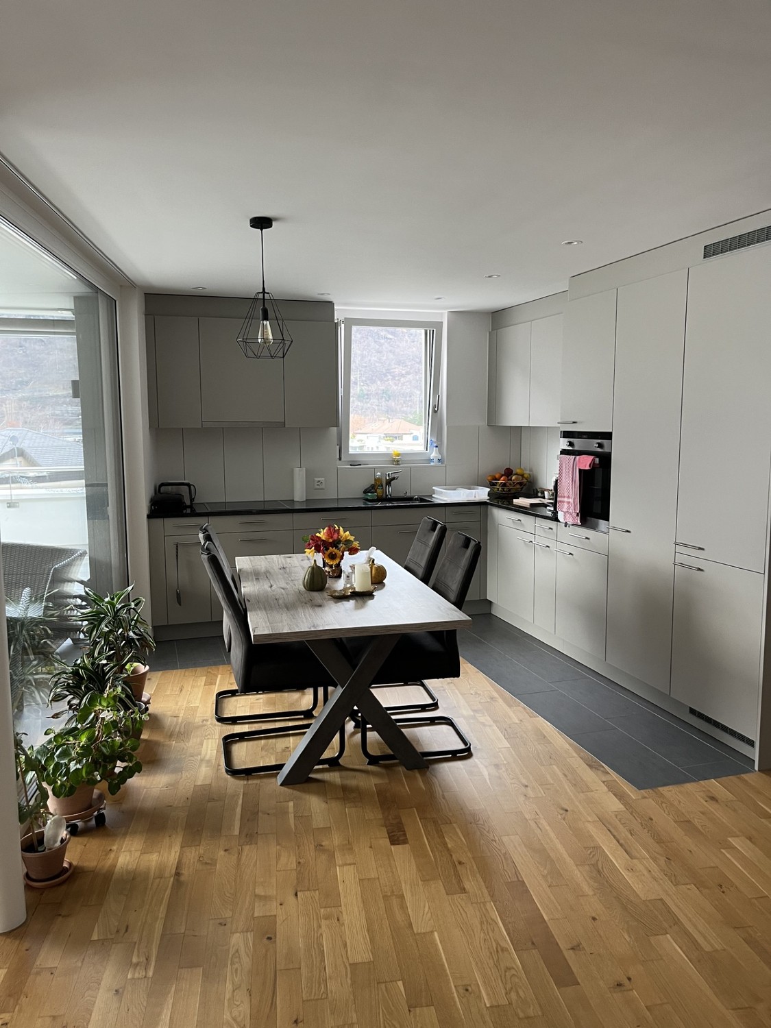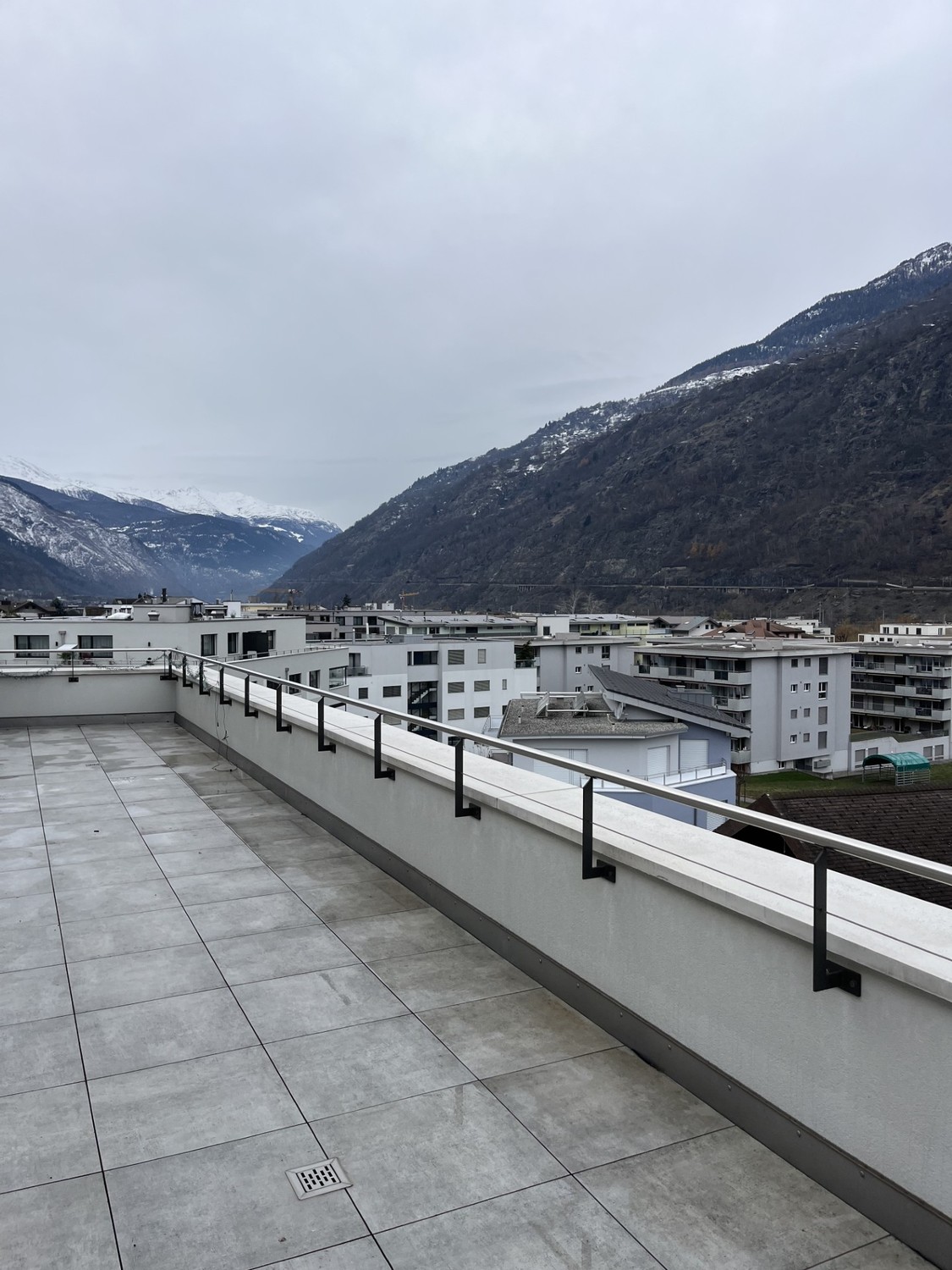 3.5-Zimmer-Attikawohnung in Glis. 15 Minuten zu Fuss vom Bahnhof in Brig entfernt. 2 Schlafzimmer, 2 Badezimmer, Tiefgaragenparkplatz und Nebenkosten im Preis inbegriffen. 86 m² Wohnfläche und ca. 50 m² Terrasse + ein Kellerabteil. Wir sind die ersten Bewohner dieser Wohnung, Sie wären also die zweiten.