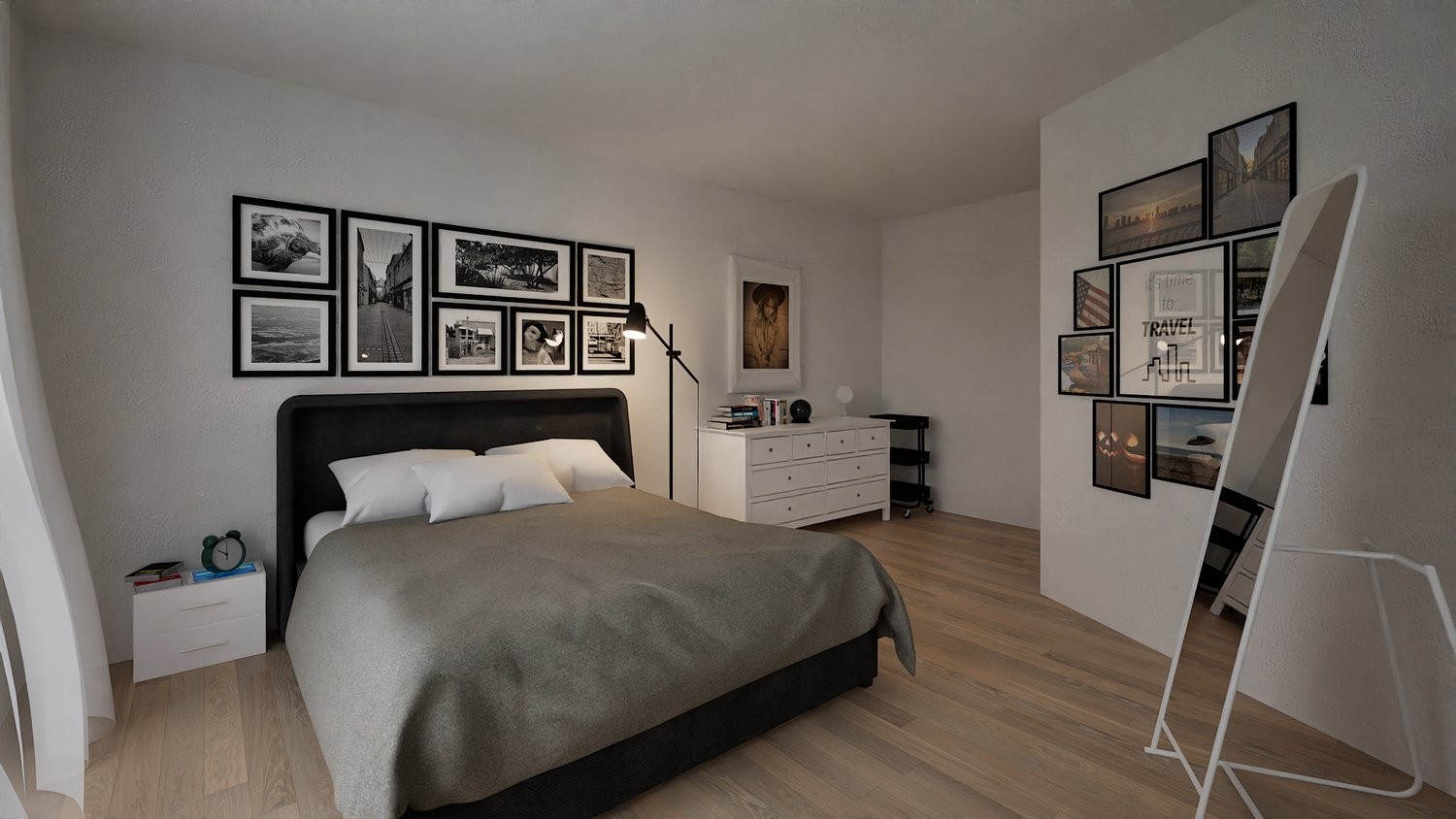 Das Schlafzimmer bietet ausreichend Platz für eine komfortable Einrichtung und überzeugt durch eine angenehme Raumaufteilung. Ergänzt wird die Wohnung durch ein Badezimmer mit Badewanne sowie einen praktischen Eingangsbereich mit Stauraum.
