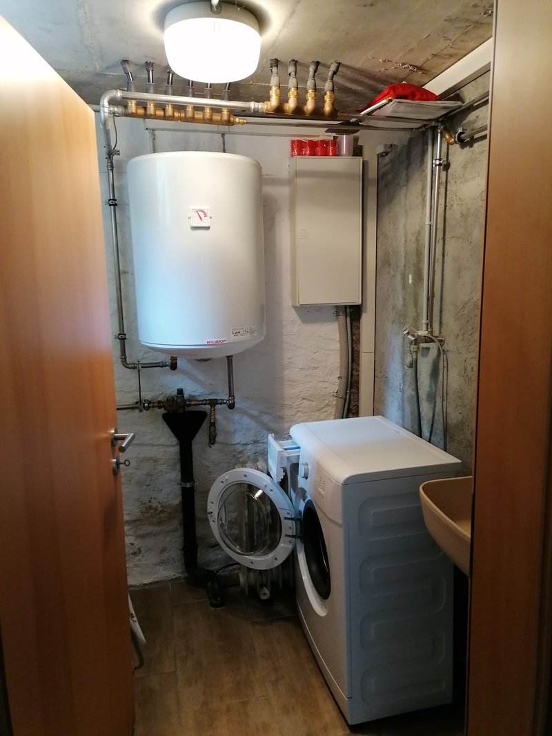 Technikraum mit Waschmaschine.