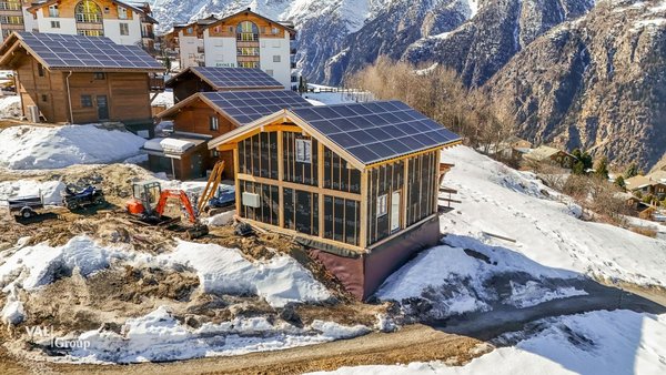 Das gesamte Chalet verfügt über ein modernes Heizsystem mit umweltfreundlicher Luft-Wasser Split-Wärmepumpe und energieeffizienter Bodenheizung. Ergänzt wird dieses System durch elektrische Sonnenkollektoren mit Speicher auf dem Dach, die zusätzlich für niedrige Heiz- und Stromkosten sorgen. Die Fenster sind mit einer 3-fach Isolierverglasung ausgestattet, was eine hohe Energieeffizienz gewährleistet. Die Balkongeländer aus Glas und Holz bieten einen herrlichen Blick auf die beeindruckende Walliser Bergwelt.