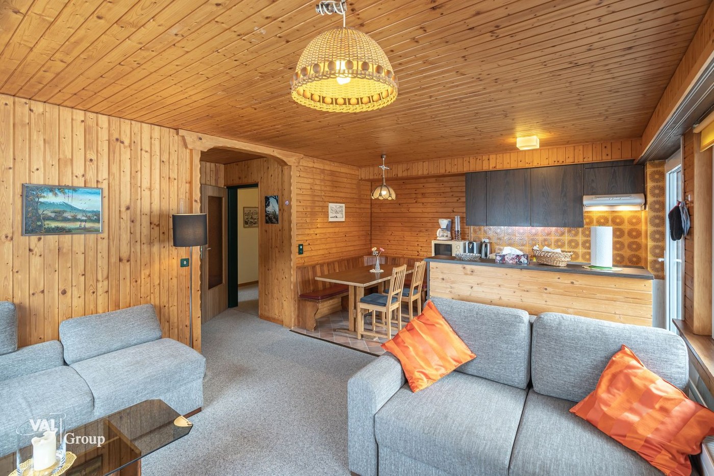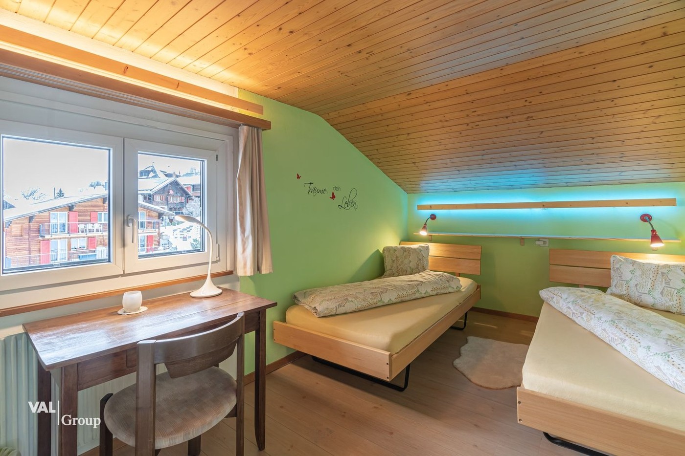 In den beiden 3 ½ Zimmer Wohnungen im Erdgeschoss befindet sich ein offener und hell gestalteter Wohn- und Essbereich, in der die Küchen zweckmässig eingerichtet sind. Die Fensterfronten, welche sich überall wiederfinden, lassen die Wohnungen lichtdurchflutet erscheinen und gewährleisten einen wunderbaren Ausblick. Durch einen Gang werden in der ersten Wohnung, Wohn- und Essbereich vom Schlafzimmer getrennt. Auch die Schlafzimmer sind in beiden Wohnungen lichtdurchflutet. Der traditionelle Walliser Ferienwohnung-Stil mit vielen Holzelementen und Teppichboden schafft ein heimeliges Gefühl. Die Nasszellen sind ebenfalls in beiden Wohnungen in derselben Art und Weise konstruiert worden: Ein Tages-WC mit Lavabo und Toilette inklusive separatem Badezimmer mit Baddusche und einem weiteren Lavabo ausgestattet. Ideal, wenn sich mehrere Personen in der Wohnung befinden.