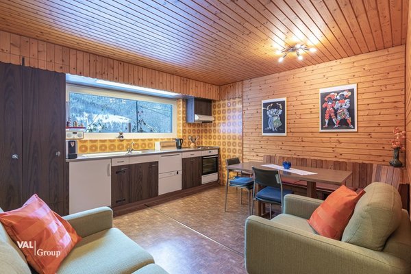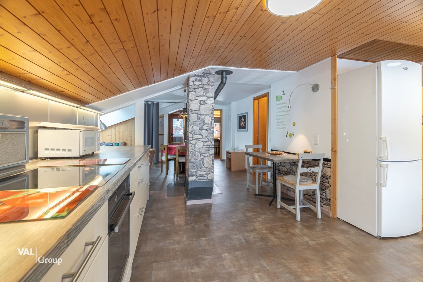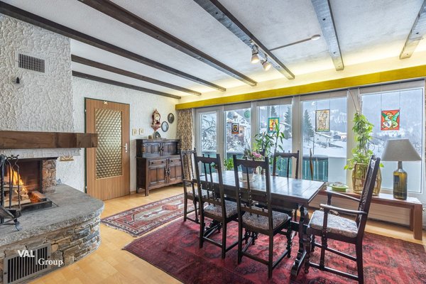 Die in der zweiten Etage situierte 4 ½ Zimmer Wohnung beinhaltet beim Betreten einen Windfang mit einem gegenüberliegenden Flur. Rechter Hand folgt eine massgeschneiderte Küche über Eck, welche neu gemacht wurde. Dem Flur weiter entlang befindet sich wieder eine Küche, Waschmaschine und Tumbler sind hier integriert und ebenfalls ein Esstisch. Ein idealer Ort, um gemütlich Beisammen zu sein. Hinter dem Essbereich folgt das grosszügige Wohnzimmer, in dem ein Cheminée mit Steinelementen eingebaut ist. Geniessen Sie sinnliche und entspannende Abende vor dem Feuer nach einem anstrengenden Skitag. Der im Wohnzimmer eingerichtete Esstisch lädt ein, um in einem anderen Ambiente kulinarische Köstlichkeiten zu gniessen. Lichtdurchflutet wird der Raum durch die längliche Fensterfront, welche einen fantastischen Ausblick gewährleistet. Der direkte Balkonzugang ermöglicht genügend Platz, um sich auch draussen in der frischen Luft und an der Sonne aufzuhalten. Alle drei Schlafzimmer sind grosszügig und bieten genügend Platz, um sich zurückzuziehen und erholen zu können. Abgetrennt werden die Schlafzimmer, Küche, Bad und Tages-WC von einer geräumigen Diele, ausgestattet mit Einbauschränken. Angrenzend befindet sich ein Tages-WC mit Lavabo und Toilette und dem danebenliegenden Badezimmer mit Doppellavabo und einer Dusche.