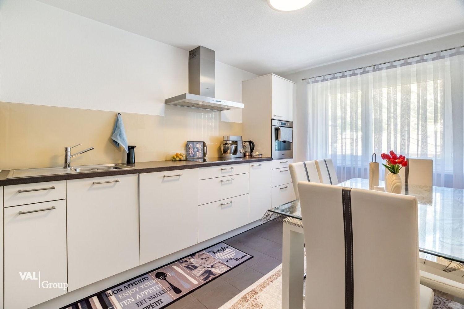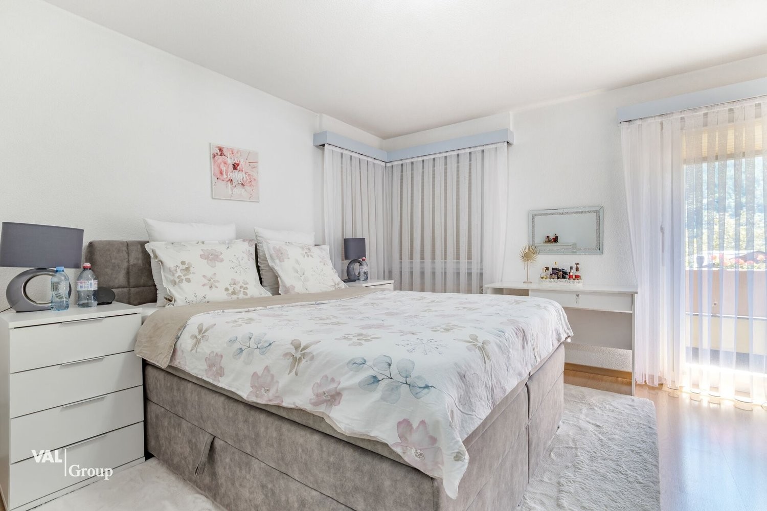 Der Wohn- und Essbereich bildet das Herzstück der Wohnung und lädt zum Verweilen und Zusammensein ein. Von hier gelangen Sie direkt auf den sonnigen Balkon, von dem aus Sie die schöne Bergsicht geniessen können. Drei Schlafzimmer bieten ausreichend Platz für Familie, Gäste oder ein Homeoffice.