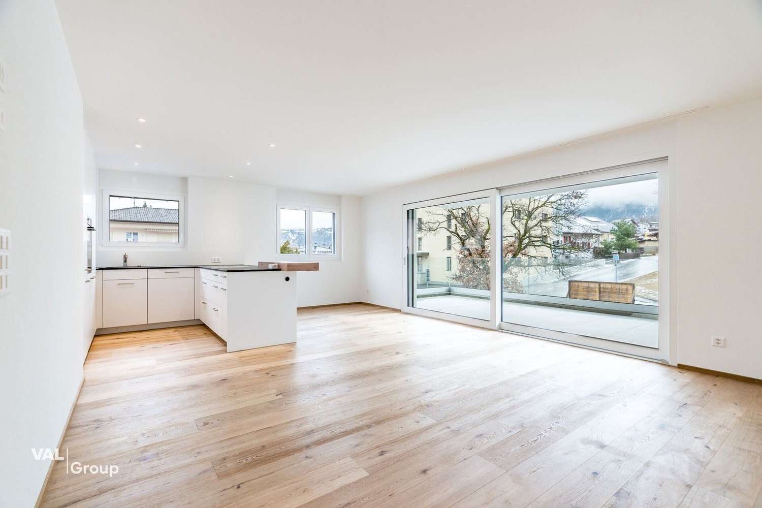 Der grosszügige Wohn- und Essbereich bildet das Herzstück der Wohnung. Dank grosszügiger Fensterflächen entsteht ein helles, offenes Raumgefühl mit angenehmer Wohnatmosphäre. Der direkte Zugang zum sonnigen Balkon erweitert den Wohnbereich nach draussen und schafft zusätzlichen Platz zum Entspannen und Geniessen.