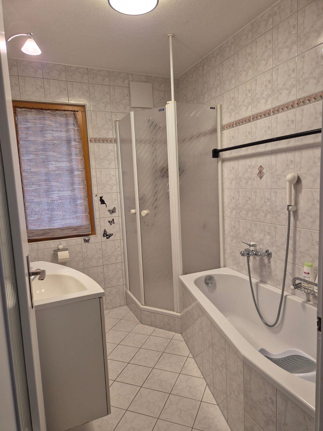 Die Wohnung verfügt über zwei Balkone, die zum Entspannen einladen, sowie Plissées und teilweise Fliegennetze an den Fenstern.
