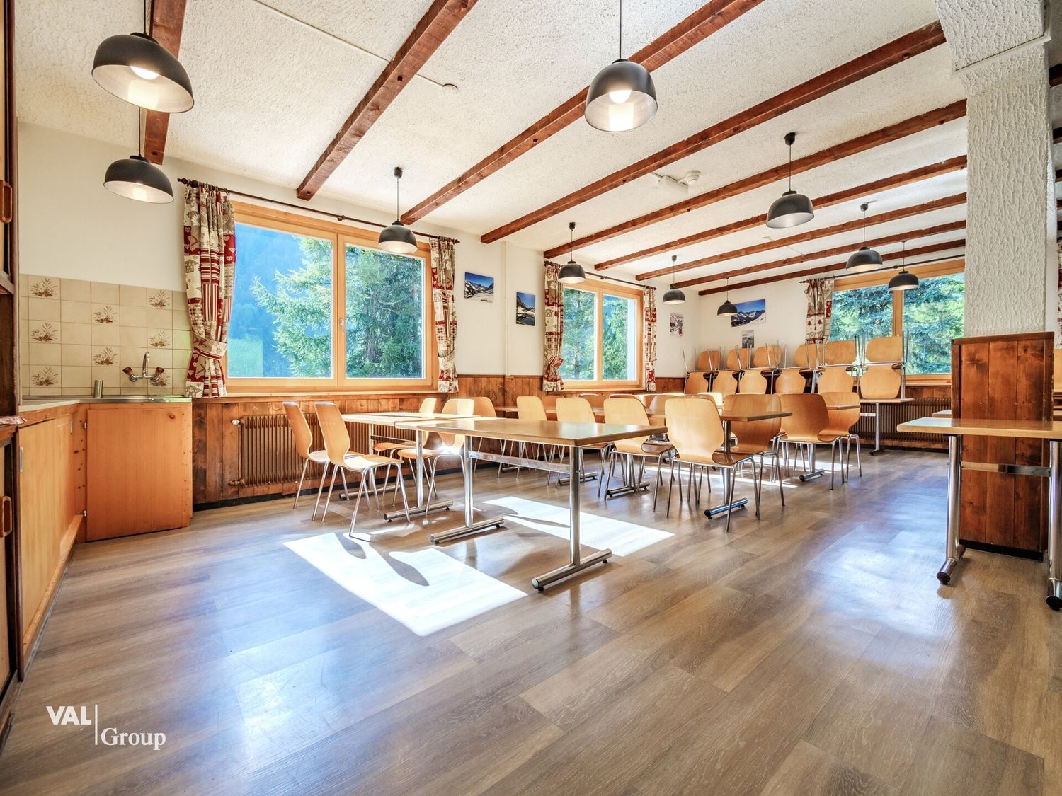 Ce logement de groupe, idéalement situé à l'écart de toutes nuisances et en lisière de forêt, tout en étant à proximité immédiate du centre de Zinal et des remontées mécaniques, est parfaitement équipé pour accueillir des groupes jusqu'à 100 personnes. Avec une surface habitable impressionnante de 1'127 m², il dispose de 23 chambres, incluant des chambres collectives, des studios, et des espaces communs tels qu'une cafétéria, une salle de jeux, et un local à skis. Tout le nécessaire est déjà en place : mobilier, literie, couverts, et matériel de cuisine.
