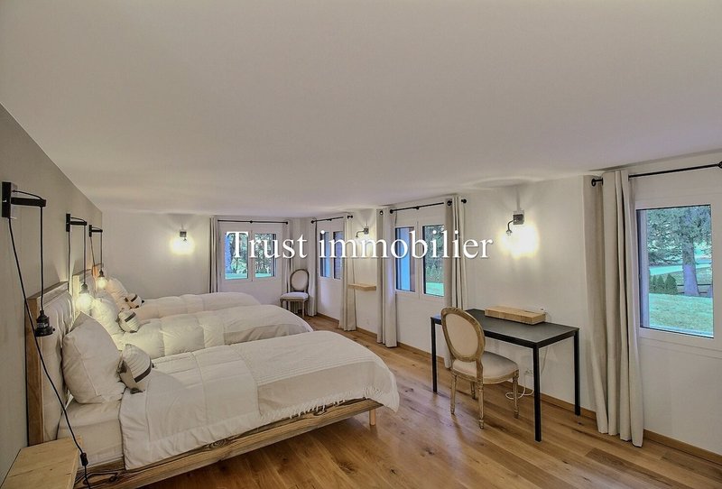 In a privileged area close to the Hôtel du Golf and Golf Ballesteros and just a stone's throw from the centre of Crans, relax in this charming detached Chalet with 7 rooms on 3 floors, completely renovated in a warm, chic style.