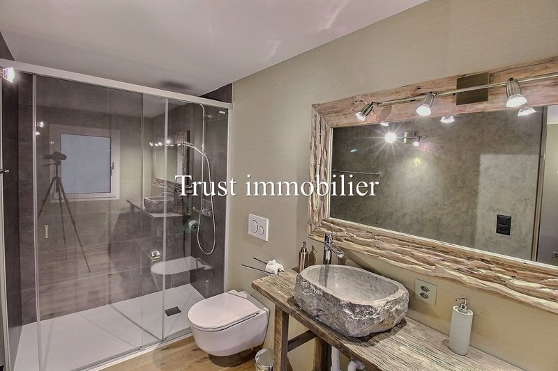 1 chambre (lit double) avec salle de bain attenante (douche, lavabo, WC) et dressing