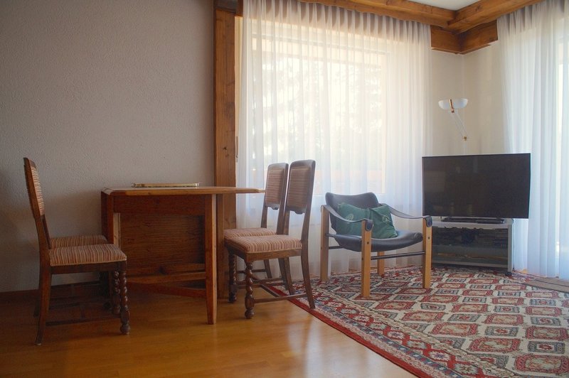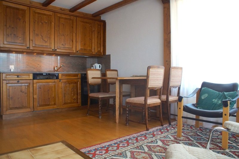 1 grande sala ad angolo est e sud - angolo cottura recentemente arredato - tavolo da pranzo per 6 persone - zona soggiorno con TV a grande schermo, lettore CD - balcone est e terrazza sud adiacenti
