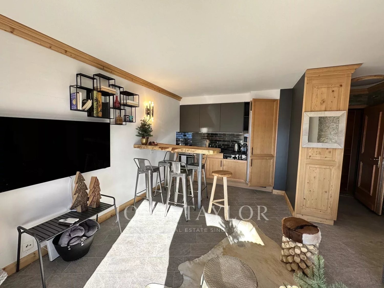 - 1 séjour / salle à manger / cuisine avec une cheminée et accès balcon sud