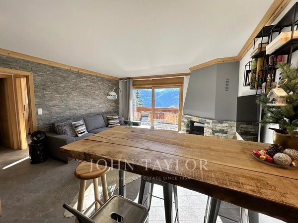 Ce charmant 2,5 pièces de 55m2, lumineux et entièrement refait avec modernité et élégance, se situe à 5 minutes à pied du centre de Montana, aux abords d'une route calme à sens unique.