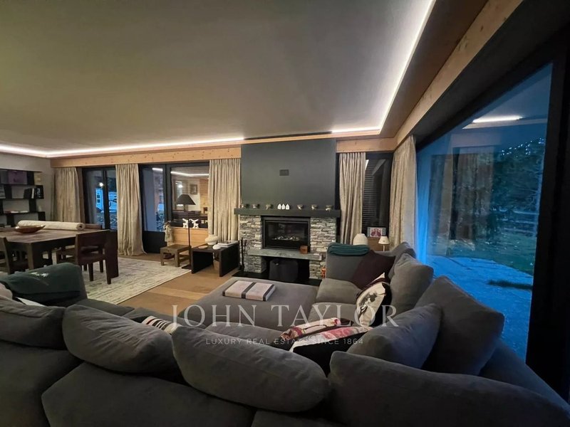Designed with natural wood, clean architectural lines, and premium materials throughout, the apartment offers a harmonious blend of modern design and alpine authenticity. The spacious open-plan living and dining area is enhanced by a fireplace, creating a cosy atmosphere for winter evenings, while large openings bring in natural light and connect the interior to the surrounding environment.