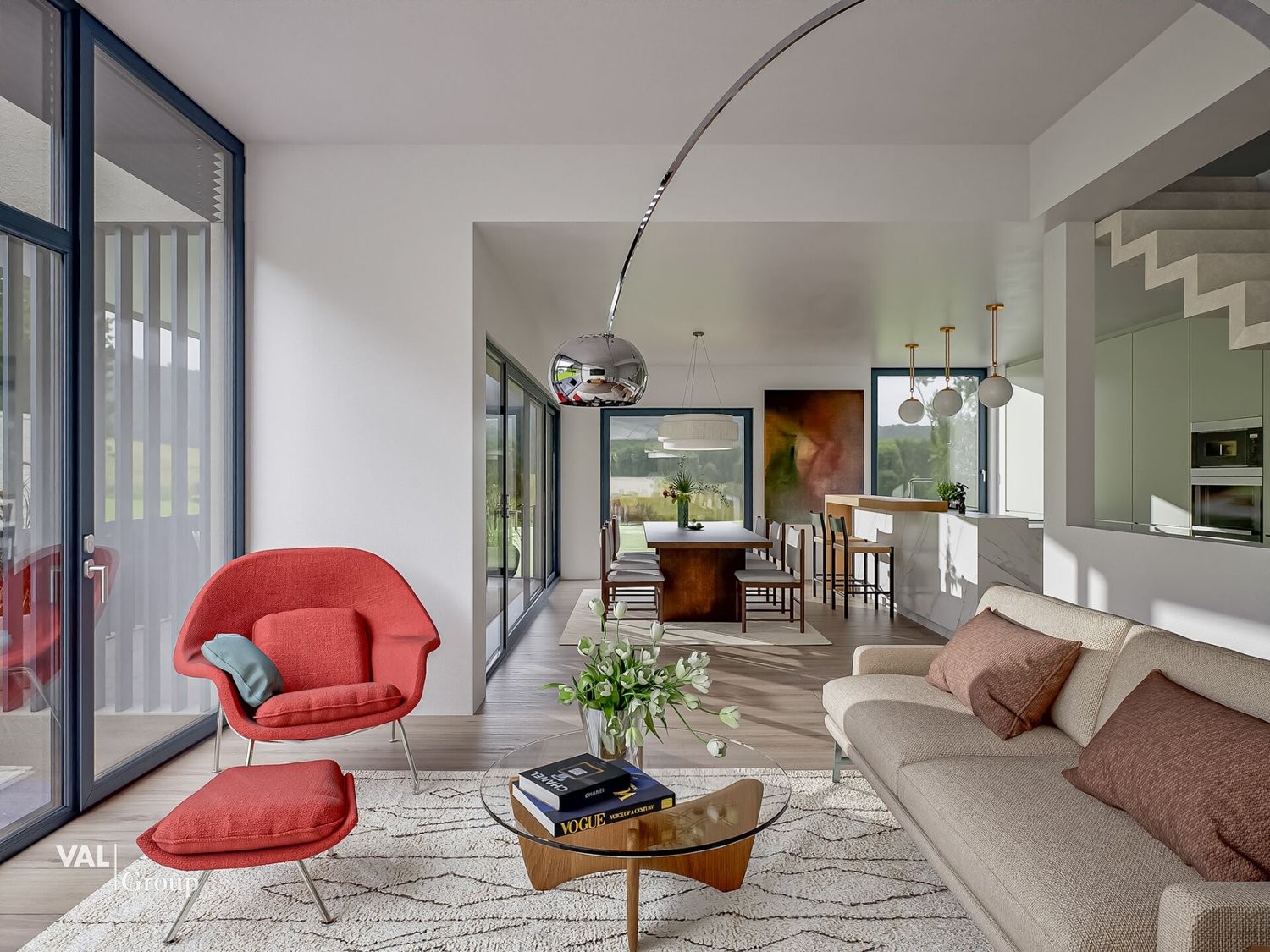 Beim Betreten des Hauses werden Sie von einem großzügigen Entrée empfangen, das nahtlos in den offenen Wohn-, Ess- und Küchenbereich übergeht. Mit einer Wohnfläche von 19,70 m² bietet der Wohnbereich reichlich Platz zum Entspannen und Geniessen. Die angrenzende Küche und der Essbereich erstrecken sich über 31,40 m² und sind das Herzstück des Hauses, ideal für gesellige Abende und kulinarische Erlebnisse. Ein zusätzliches Zimmer, das als Büro oder Gästezimmer genutzt werden kann, rundet das Raumangebot im Erdgeschoss ab. Vom Wohnbereich gelangen Sie direkt auf den überdachten Sitzplatz, der mit 14,78 m² ideal für gemütliche Stunden im Freien ist.